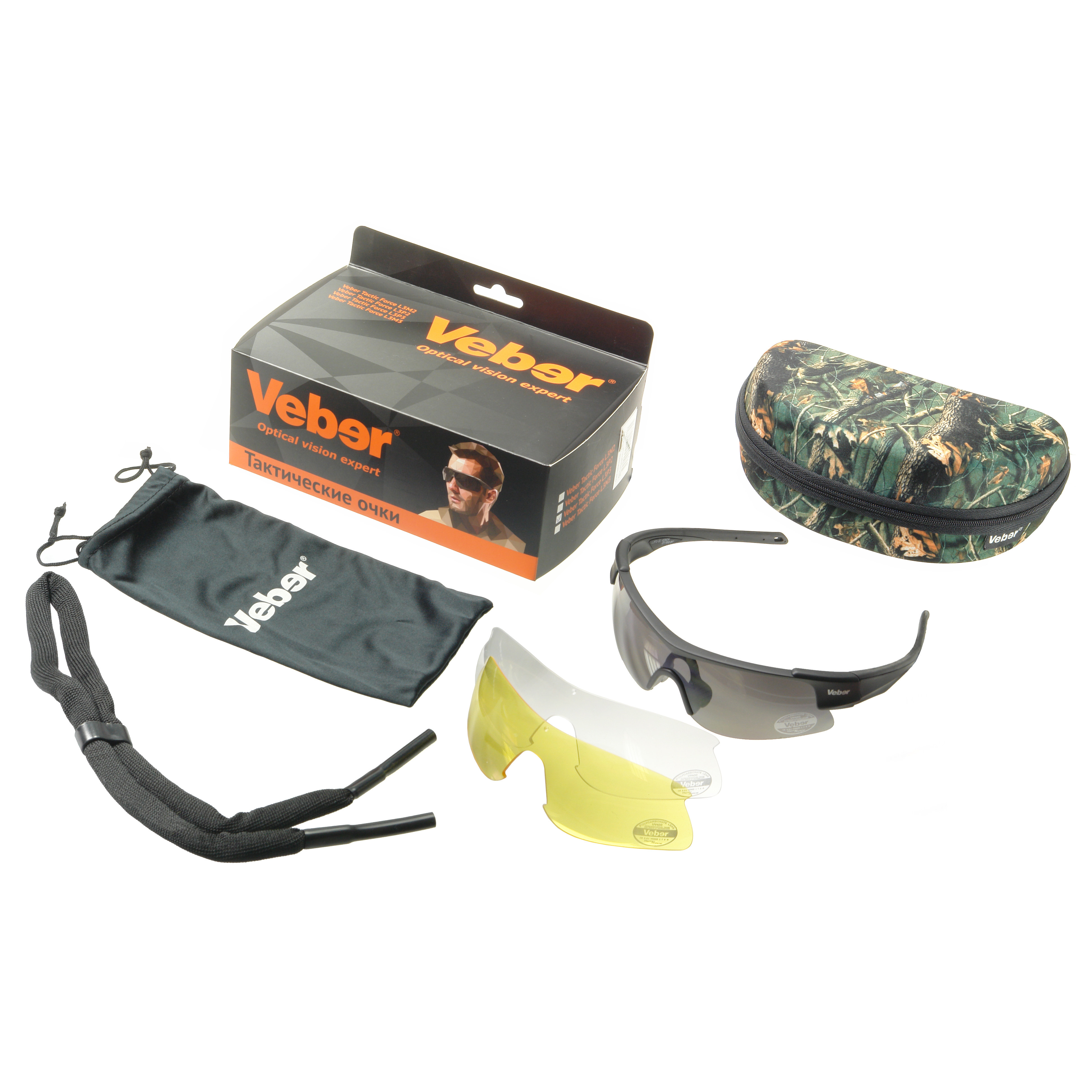 Veber Tactic Force L3P3 - баллистические стрелковые противоосколочные очки с быстросменными ударопрочными поликарбонатными линзами. Очки предназначены для защиты органов зрения от ультрафиолета, ветра, пыли, а также попадания крупных частиц во время активного отдыха и занятия экстремальными видами спорта, при стрельбе в тире, на охоте или проведении тактических учебных операций. Подходят для повседневного использования. Цвет оправы – черный.