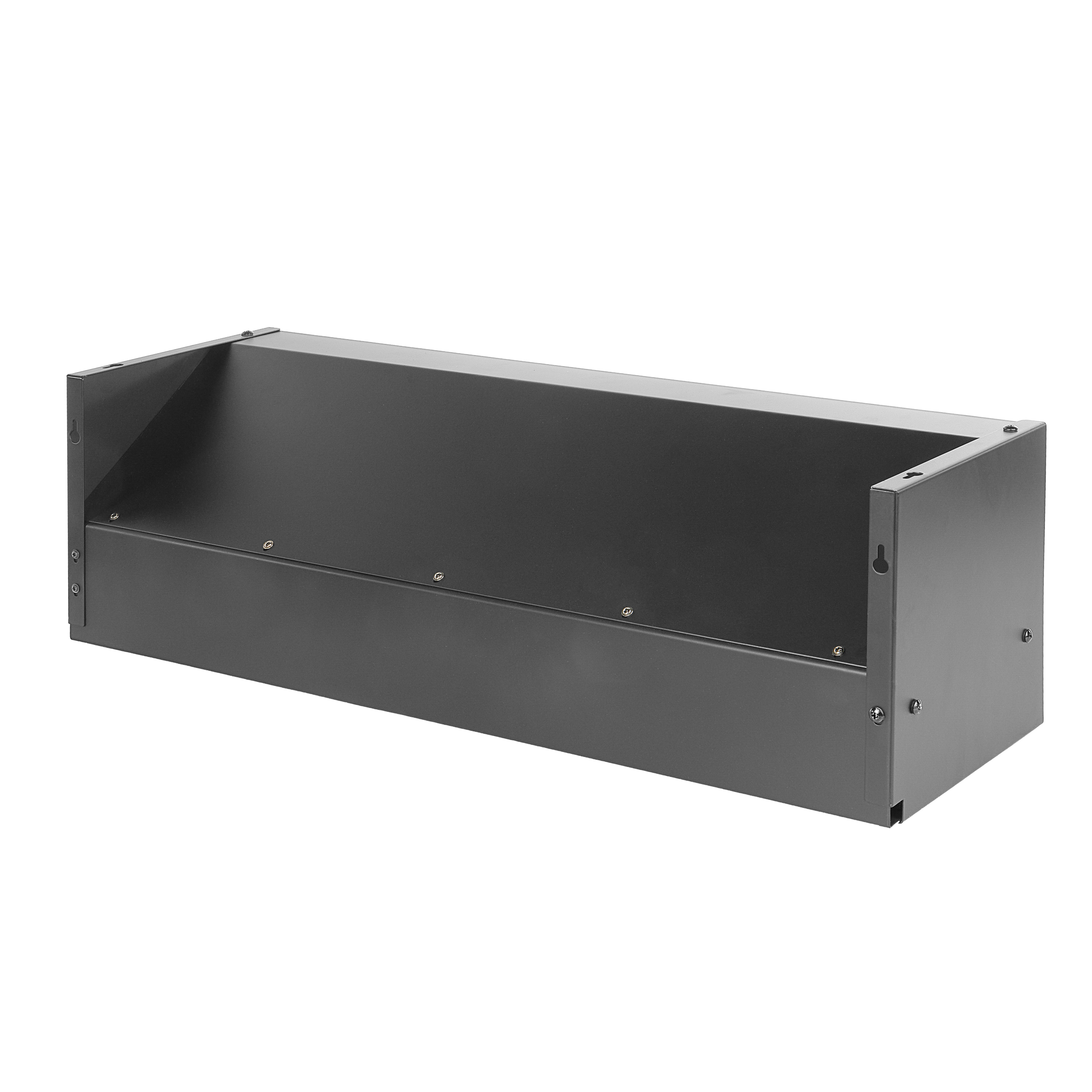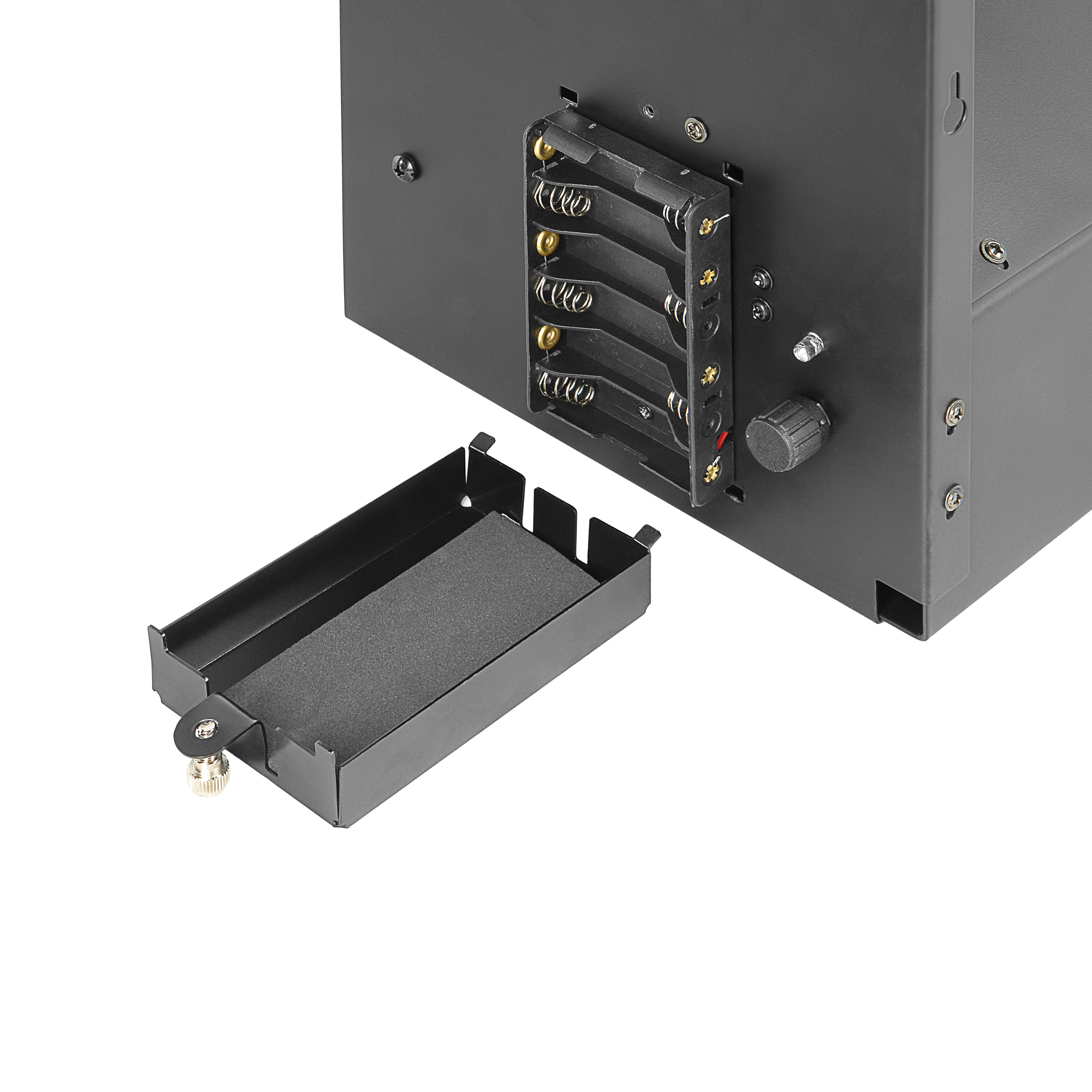 Конструкция мишени представляет собой мини-тир с толщиной стенок 1.5 мм. Габариты окна 625х60 мм, глубина конструкции 200 мм. Скос задней стенки под 45° защищает от рикошета пуль при стрельбе.