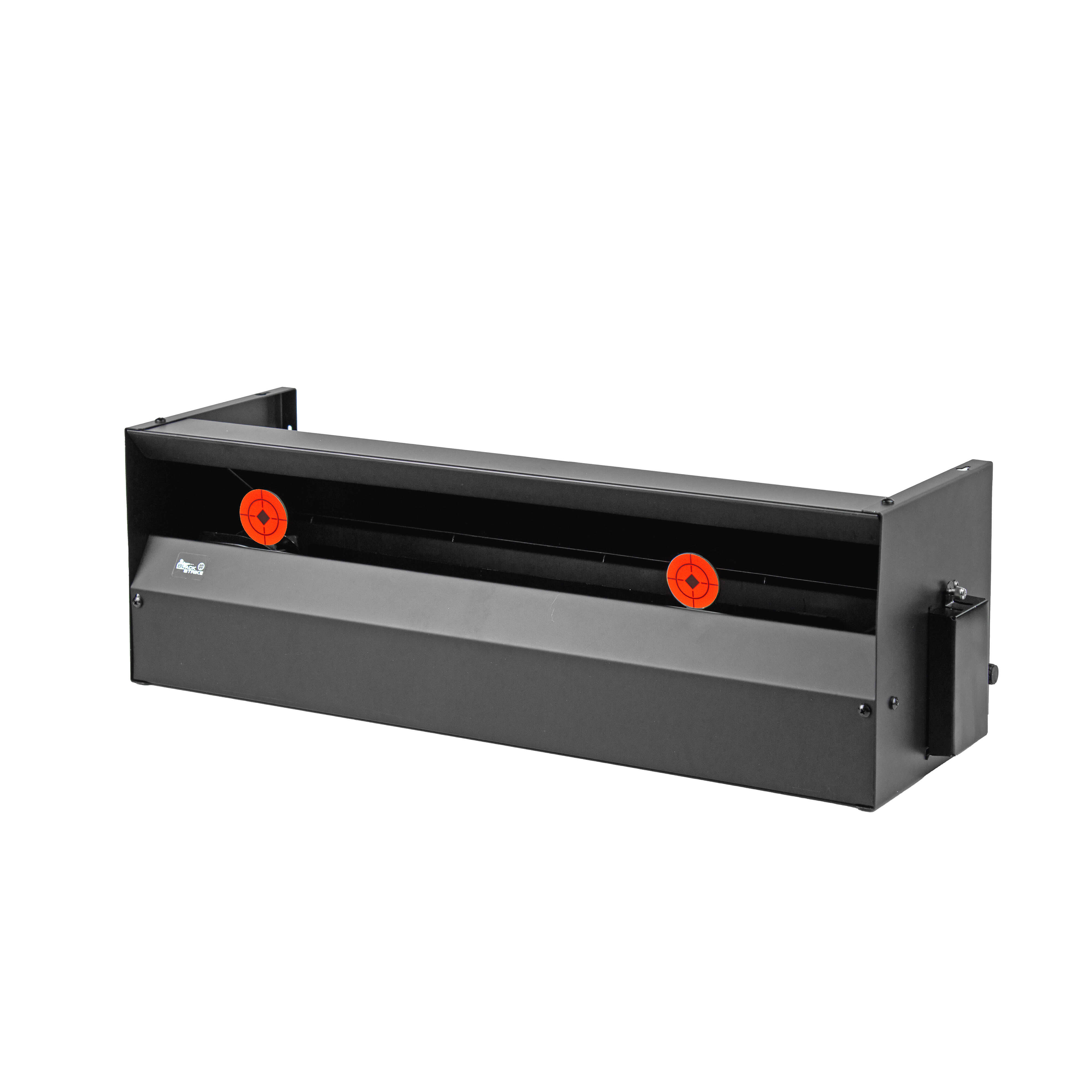 BLACK STRIKE AT62 – закрытая стальная конструкция с пулеулавливателем, скосом от рикошета и тремя подвижными мишенями с регулируемой скоростью.