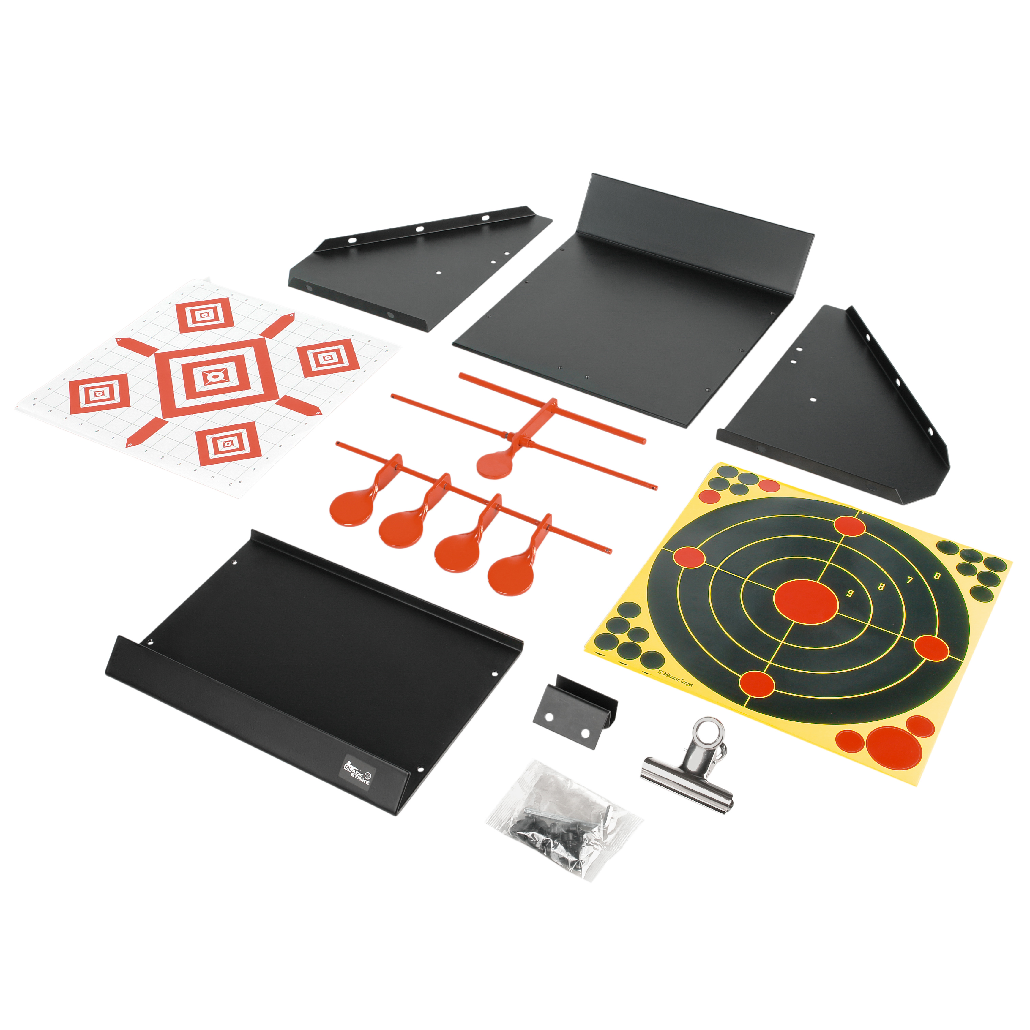BLACK STRIKE AT3150 – прочная металлическая мишень для пневматического оружия с размером окна 30,5х27 см. Оснащена вращающейся стальной мишенью на 5 целей (4+1) и комплектом бумажных мишеней. Конструкция из утолщенной стали гарантирует долговечность, а глубокая форма с защитными скосами исключает рикошет.