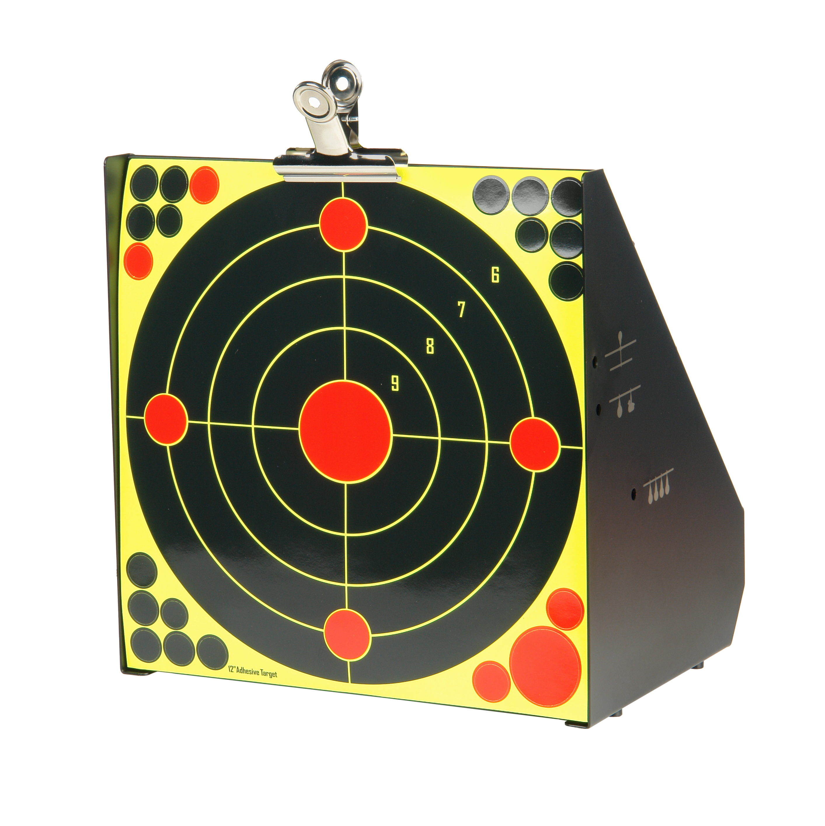 Глубокий пулеулавливатель со скошенными углами надежно удерживает пули внутри, предотвращая их отскок. Это позволяет безопасно использовать мишень на даче, в кемпинге или на стрелковой площадке.