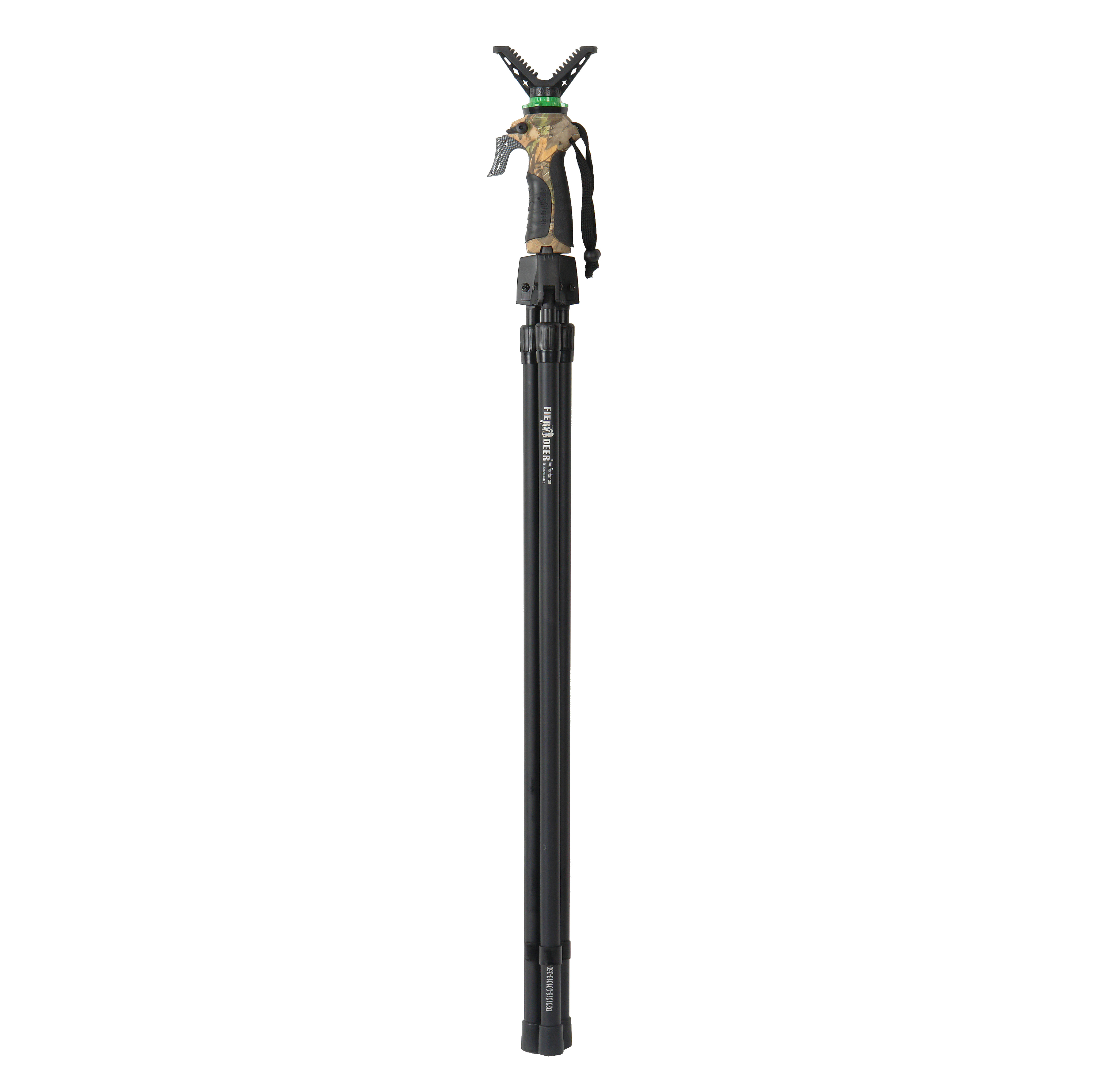 Высота опоры легко регулируется одной рукой нажатием на курок ( ножки выдвигаются под собственным весом), и жестко фиксируется предохранительным рычагом. Для удобства использования предохранитель расположен по обеим сторонам ручки.