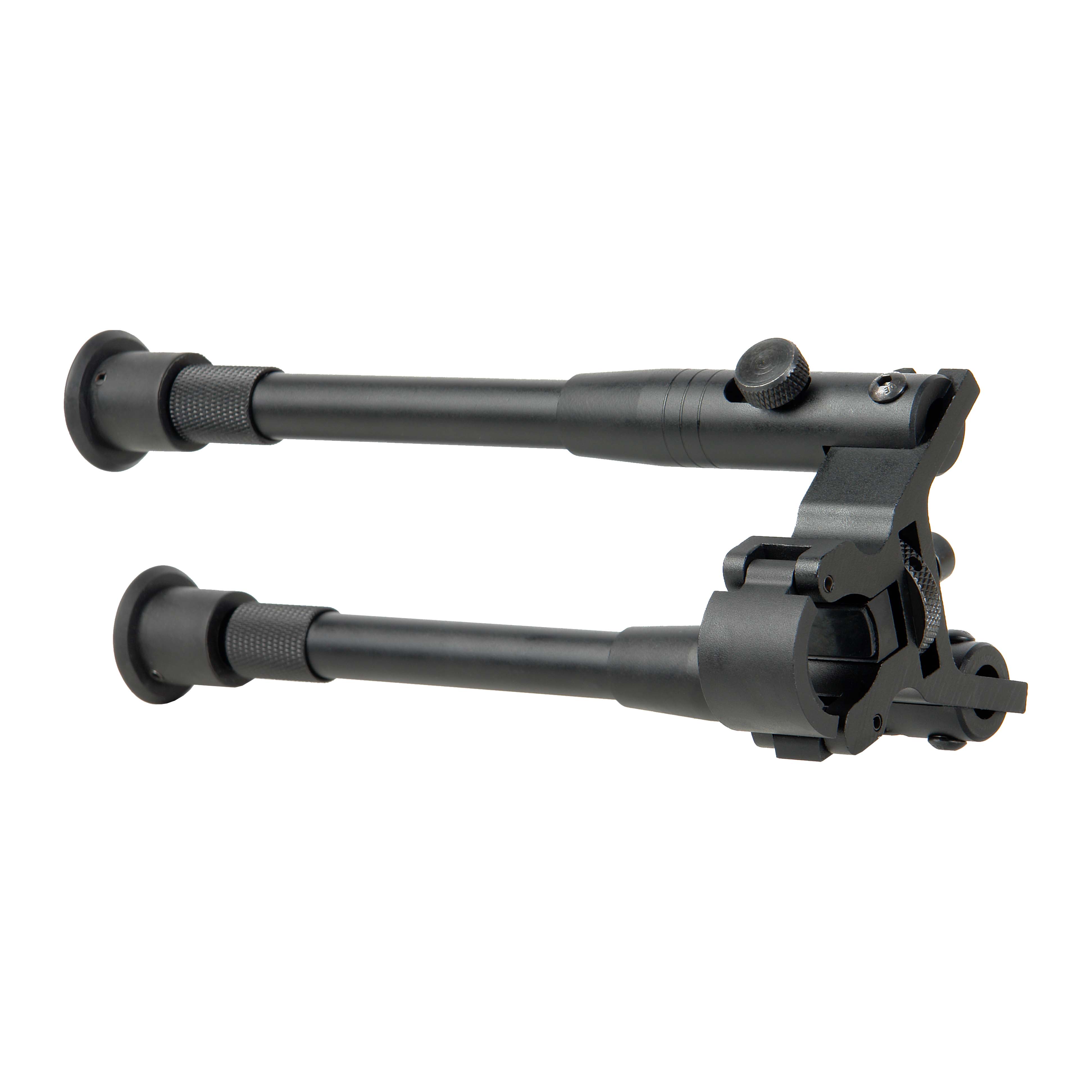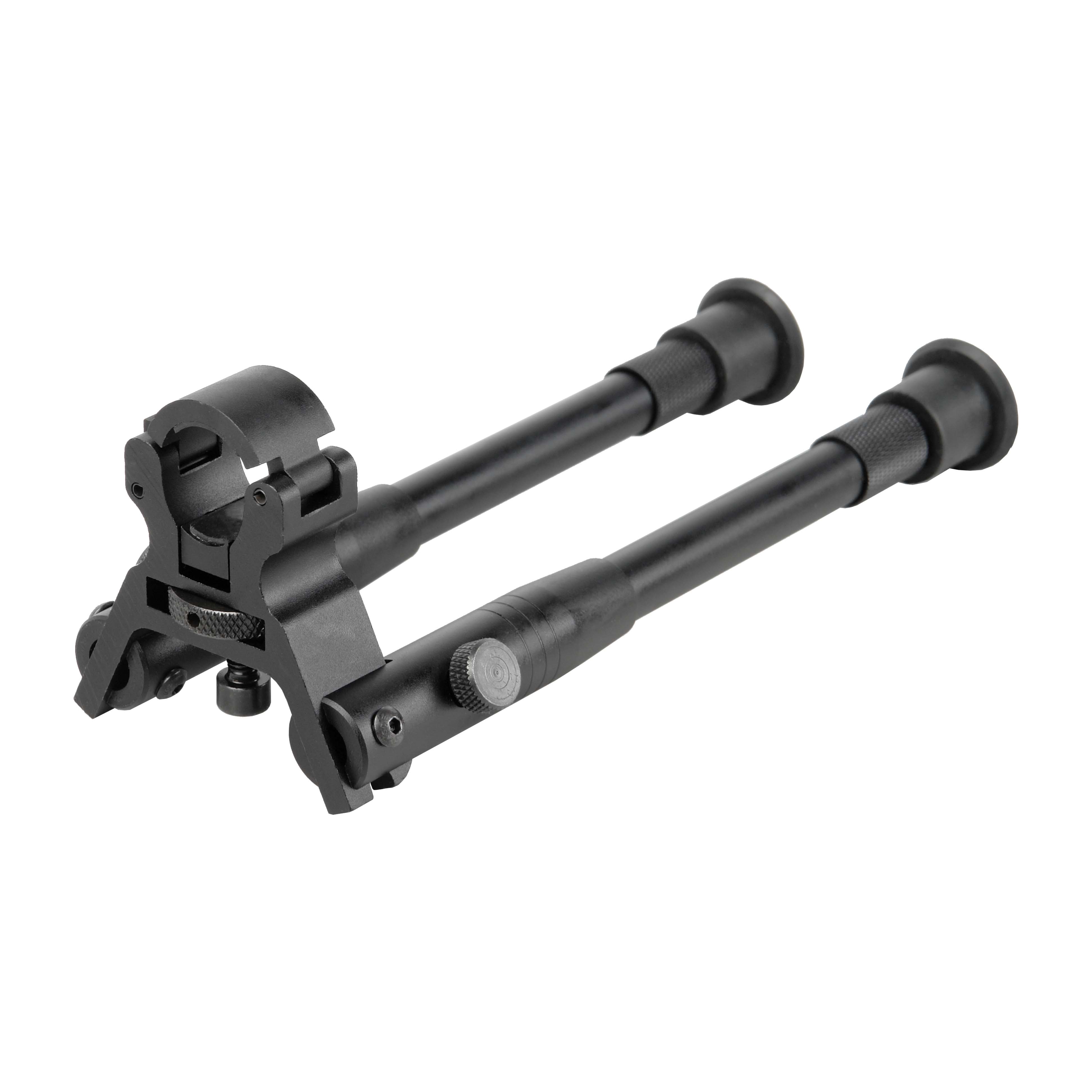 Складные двухсекционные сошки Veber 2227A. Основание — цельное, прочное и неподвижное крепится на ствол винтовки диаметром 11–19 мм.