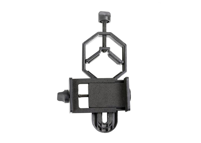 С этим адаптером для смартфона совместимы оптические приборы, диаметр окуляра которых находится в диапазоне от 29 до 45 миллиметров. По габаритам смартфона ограничений нет.