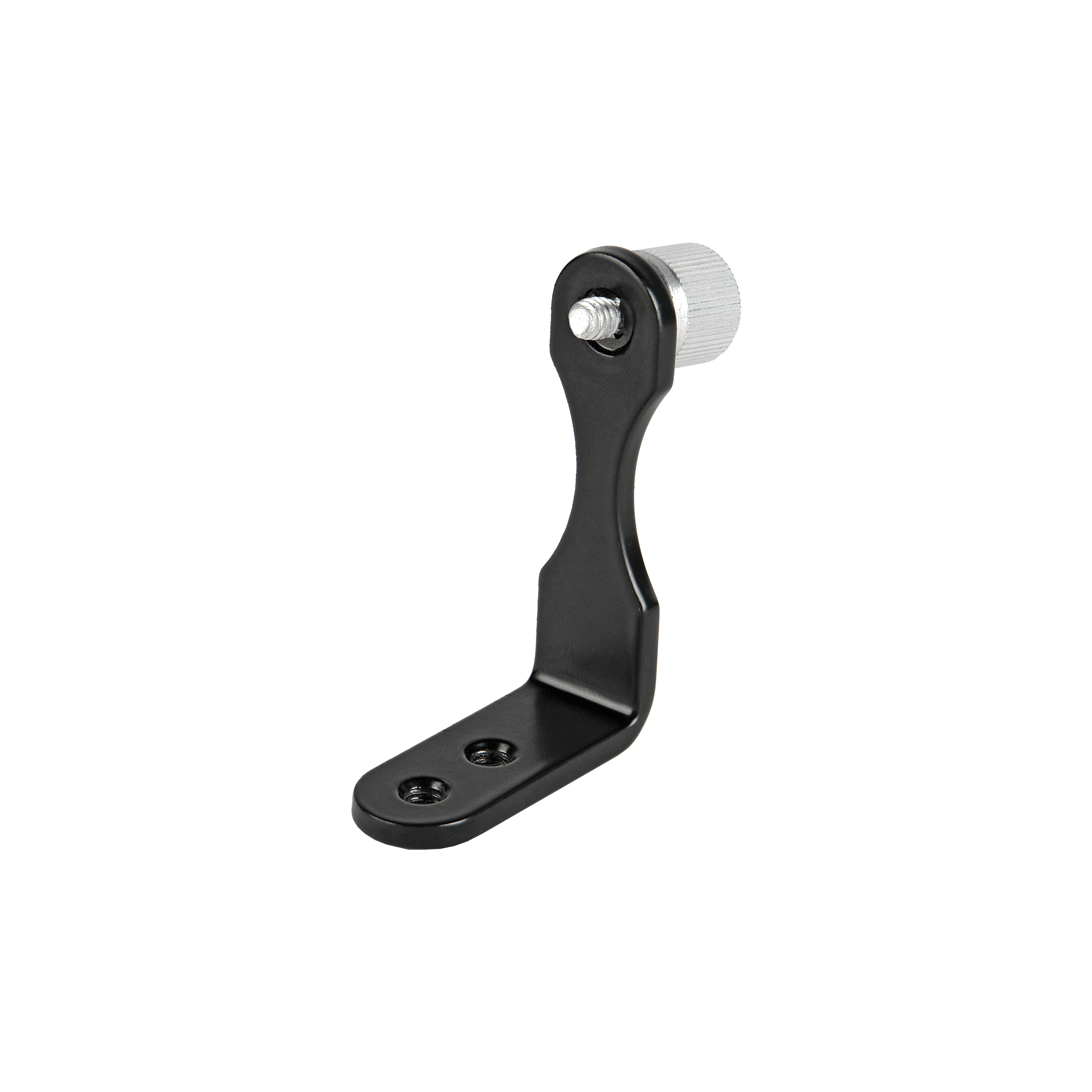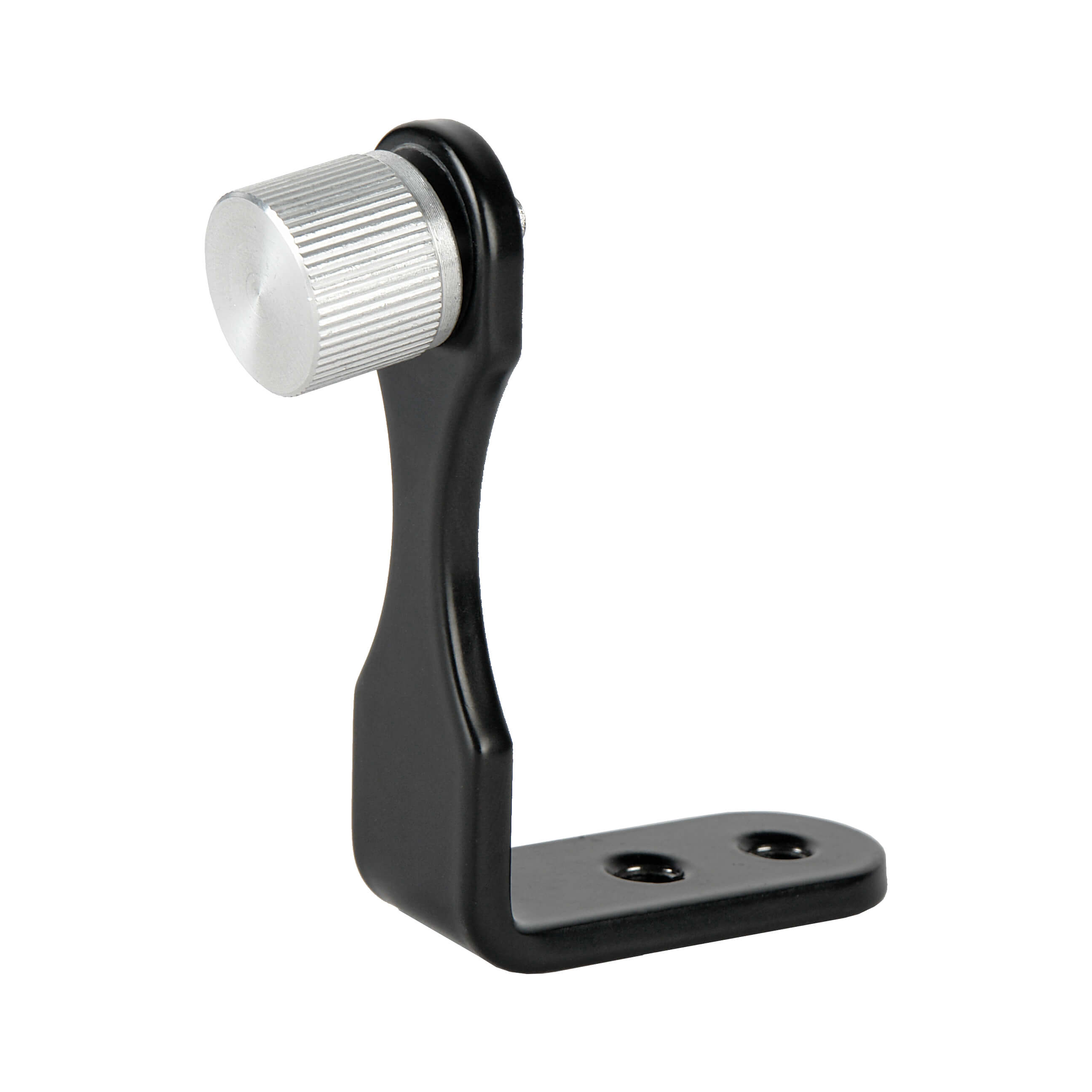Адаптер представляет собой L-образный угловой кронштейн для установки бинокля на штатив или держатель. Для этого в основании адаптера предусмотрены два резьбовых отверстия ¼ дюйма. Бинокль надежно крепится к адаптеру при помощи стального винта 1/4 дюйма с удобной для захвата крупной головкой.