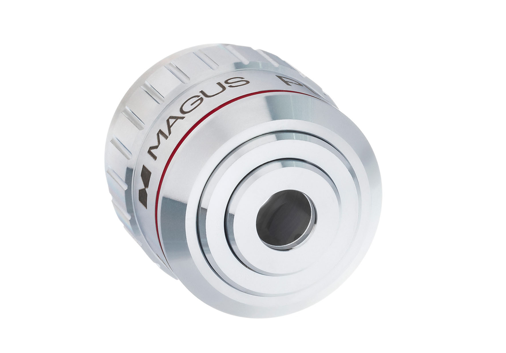 Планахроматический объектив MP4 разработан под тубус с оптической длиной «бесконечность» и может применяться как с покровным стеклом, так и без него. Благодаря рабочему расстоянием 21 мм может использоваться на биологических инвертированных микроскопах для изучения образцов в посуде с толщиной дна 1,2 мм. Парфокальная высота – 45 мм.