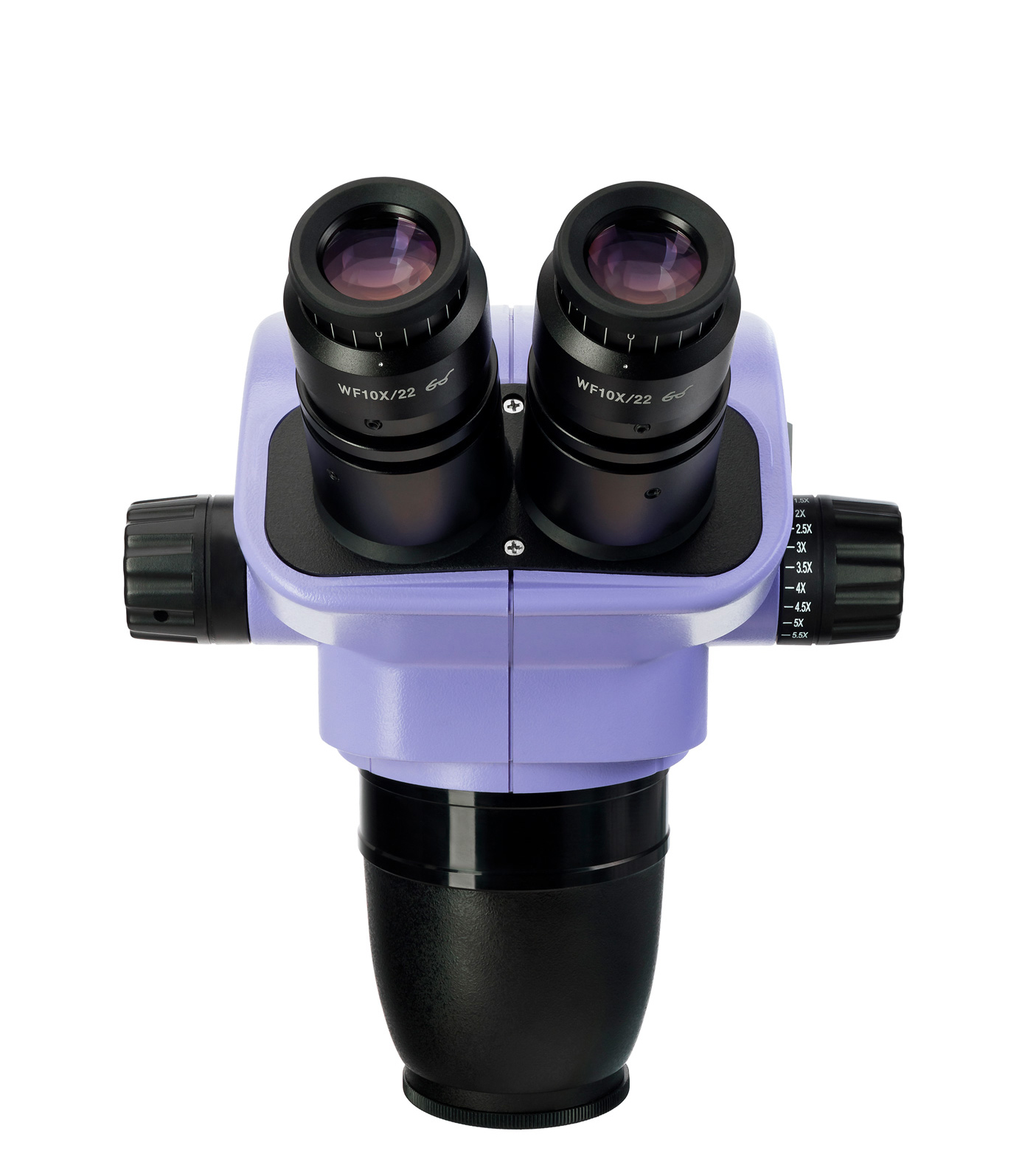 Объектив плавно изменяет увеличение в 8,4 раза без потерь фокуса. Оптическая система формирует прямое (неперевернутое) объемное изображение. Дополнительные насадки на объектив изменяют диапазон увеличения, поля зрения и угла обзора микроскопа.