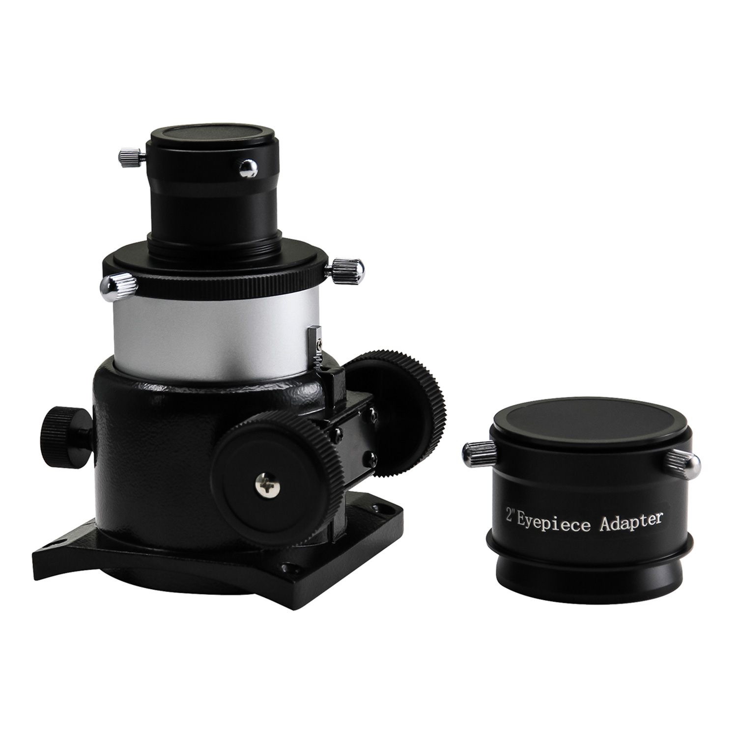 Фокусер служит для крепления окуляра в трубе телескопа и наведения резкости изображения. В основе механизма лежит система реечной передачи: две трубки разного диаметра, меньшая из которых имеет зубчатую рейку и вставлена в трубку большего диаметра. Та, в свою очередь, оснащена зубчатым колесом. При вращении ручки фокусера малая трубка перемещается и смещает окуляр. Такой механизм создает достаточно плавное для любительских и бюджетных телескопов движение оптической трубки. Посадочный диаметр фокусера – 2 дюйма, в комплект входит адаптер с 2 дюймов на 1,25 дюйма, что позволяет использовать устанавливать в фокусер окуляры с любым посадочным диаметром.