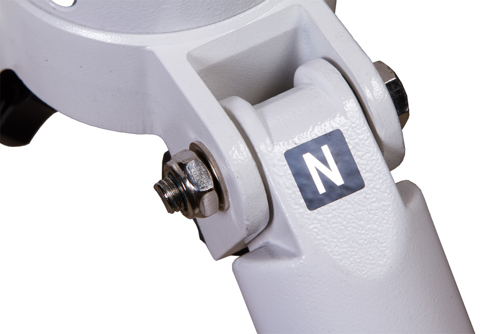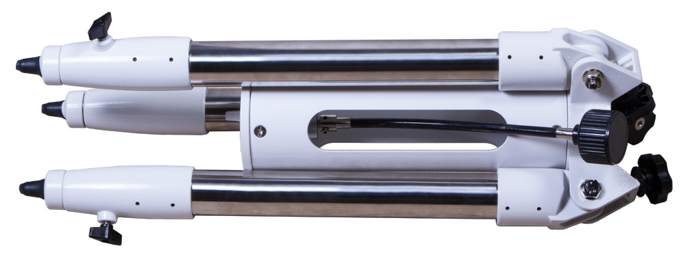 Выдвижные опоры колонны сделаны из нержавеющей стали, их длину можно регулировать. Для надежной фиксации опор используются специальные крепежные винты. В верхней части колонны размещен установочный штифт для монтировки. Установив монтировку в нужное положение, можно зафиксировать ее с помощью центрального винта.