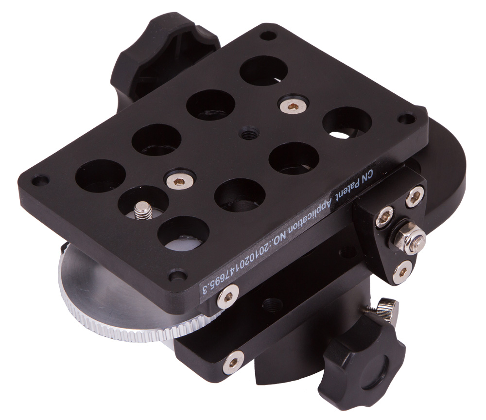 Крепежная площадка Sky-Watcher – это удобный аксессуар для астрофотографии. Устройство предназначено для установки гидирующего телескопа или цифровой камеры параллельно оптической трубе основного телескопа. Крепежная площадка снабжена микрометрическими винтами для тонкой настройки.