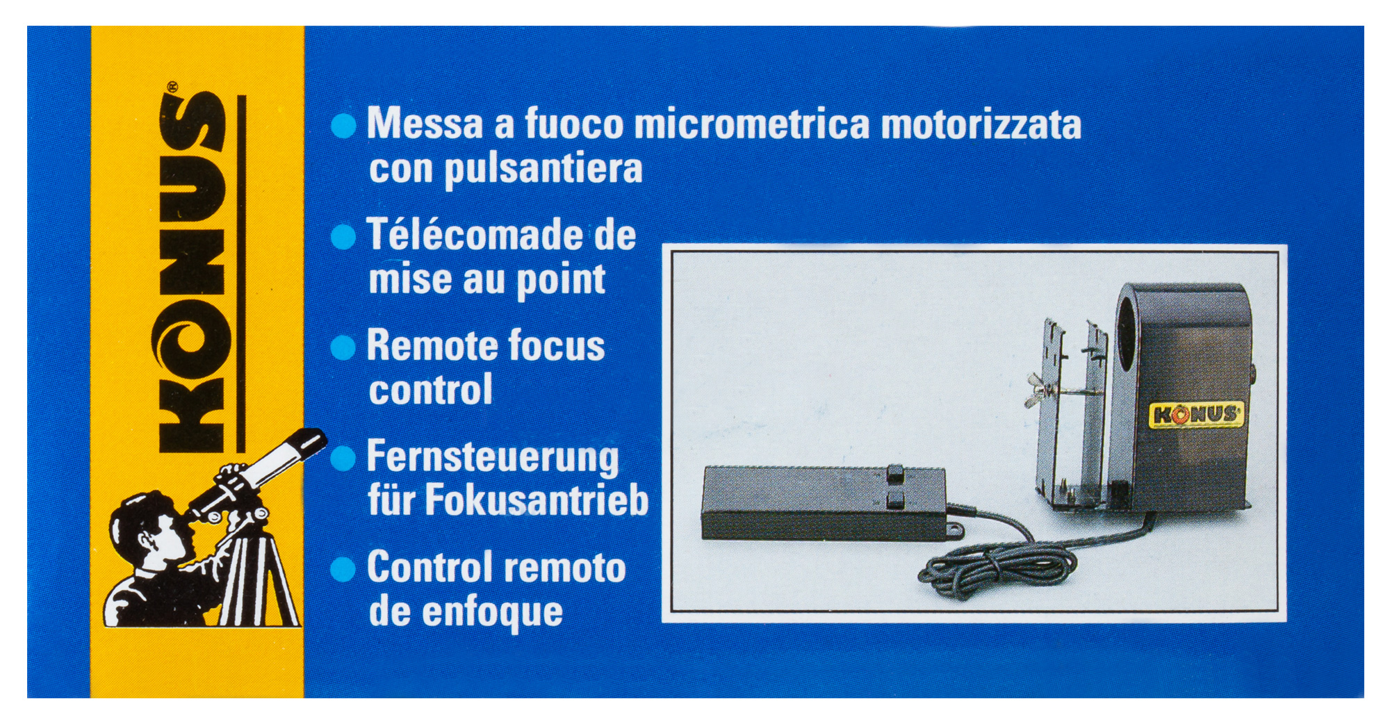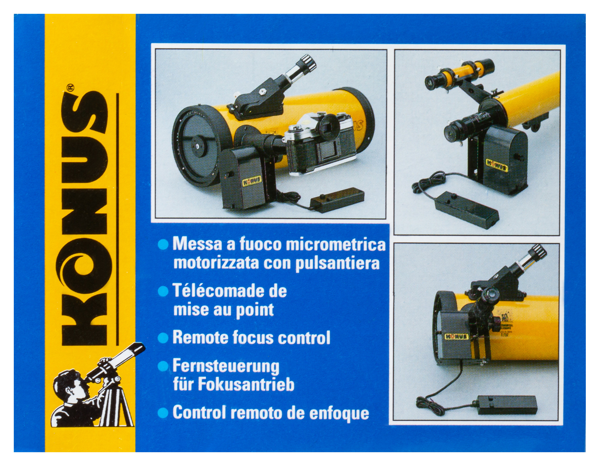 Этот электрофокусер разработан специально для телескопов Konus из линейки Konuspace, но может использоваться и с аналогичными моделями других брендов. Он нужен для более быстрой и точной настройки резкости на больших увеличениях. Если сравнивать с ручным управлением, процесс фокусировки с использованием электрофокусера становится намного проще.