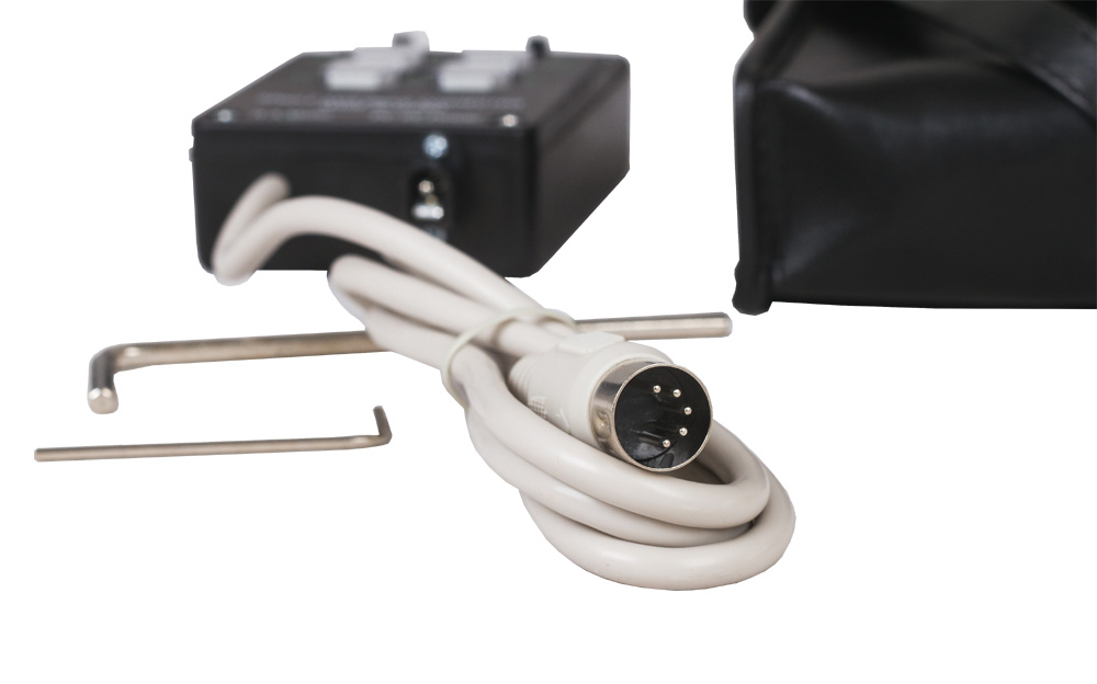 Для управления электроприводом используется пульт, с помощью которого можно выбрать скорость движения (2x или 8x). В комплект входит батарейный блок.