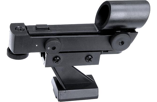 В комплект входит удобный держатель для установки на оптическую трубу. Юстировочные винты по высоте и азимуту позволяют установить искатель параллельно трубе телескопа.