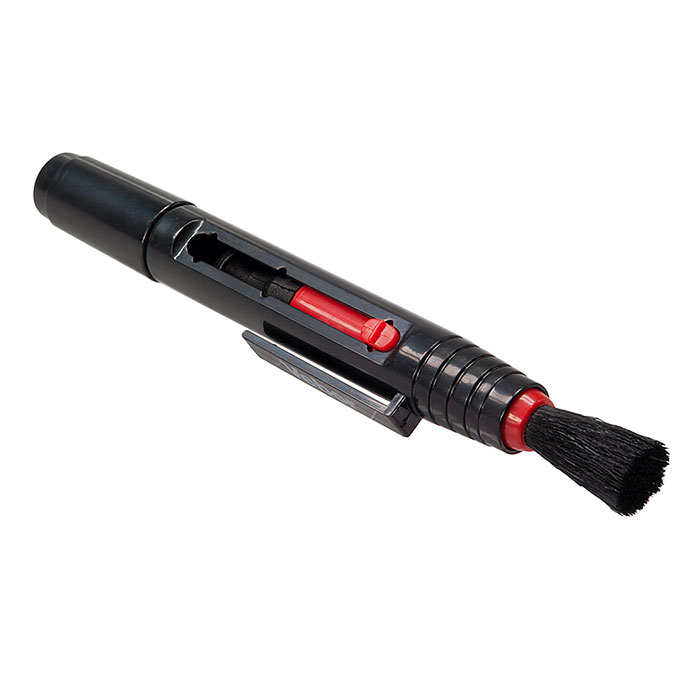 В комплекте две насадки — для сферических поверхностей (линз, луп и т. д.) и для плоских поверхностей (светофильтр, дисплей и т. д.). Мягкая выдвижная кисточка используется для первичной очистки поверхности от пыли и соринок.