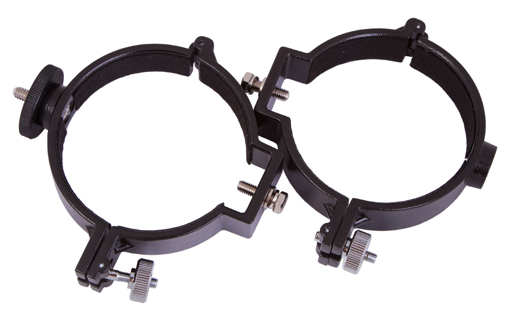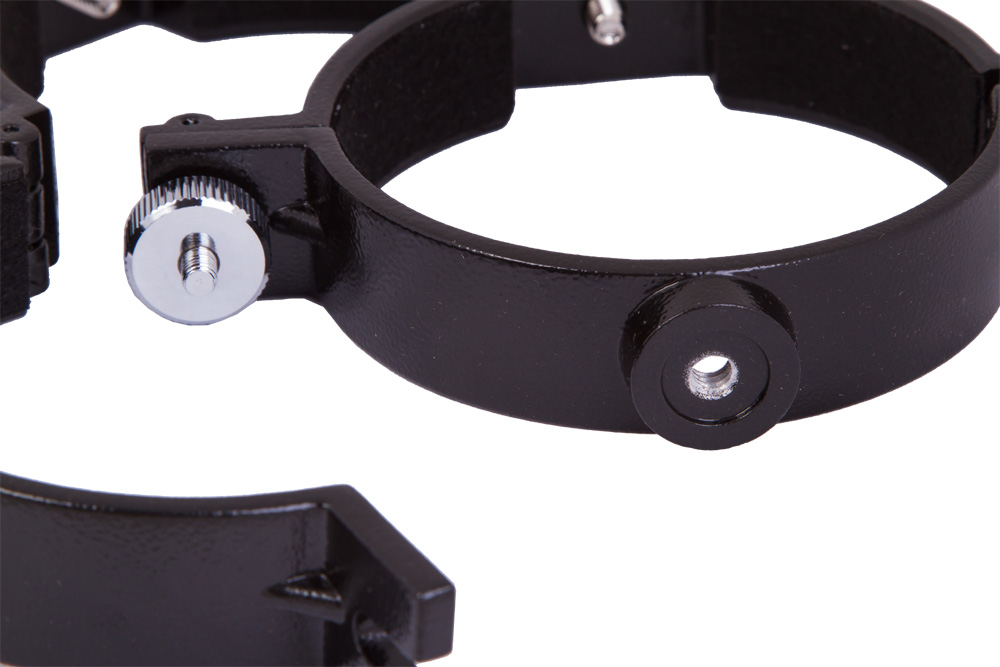 Кольца изготовлены из прочного алюминиевого сплава. Винтовое крепление на одном кольце дает возможность установить на оптическую трубу камеру.