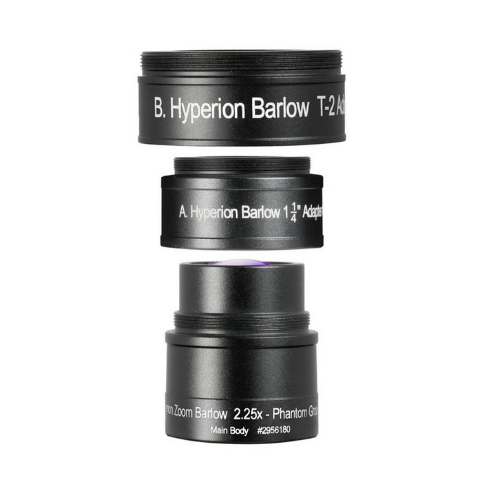 Линза Барлоу Baader Planetarium Hyperion Zoom 2,25х была разработана специально для окуляра Hyperion Zoom 8-24 мм Mark III для расширения его диапазона фокусных расстояний – от 3,5 до 10,5 мм при сохранении качества изображения. Причем расширение существенное: без линзы окуляр имеет диапазон фокусных расстояний 8-24 мм. Таким образом, окуляр приобретает диапазон фокусного расстояния от 3,5 до 24 мм! Конструкция объектива – оптический триплет; именно за счет конструкции линза удерживает изображение высокой четкости на всем поле зрения. Также, оптические элементы линзы имеют просветляющее покрытие для лучшего контраста и яркости.