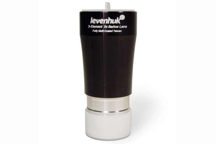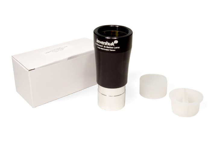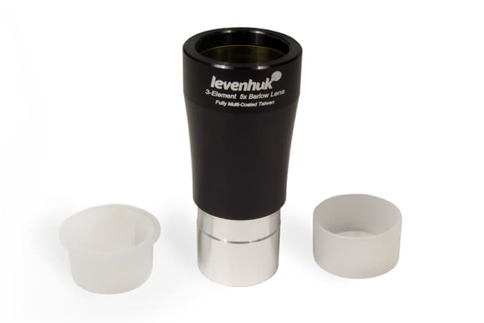 Увеличить кратность телескопа без покупки дополнительных окуляров просто. Линза Барлоу Levenhuk 5x увеличит фокусное расстояние телескопа в 5 раз, при этом не ухудшая качество изображения благодаря полному многослойному просветлению апохроматических элементов.