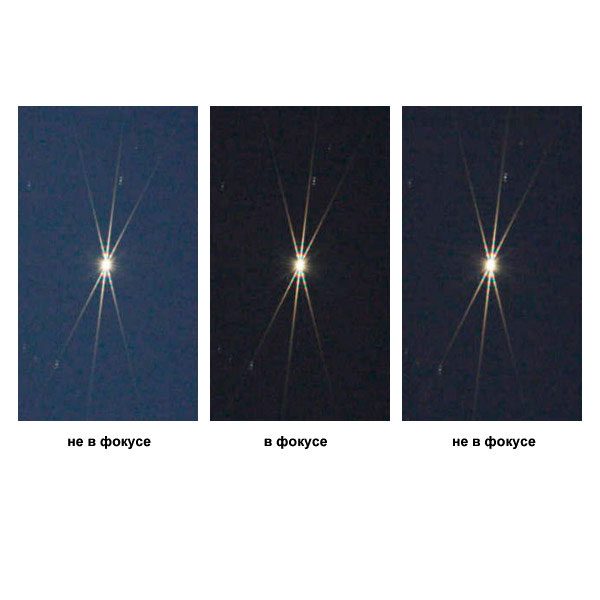 Маска надевается на объектив телескопа, после чего вокруг звезд можно заметить характерные лучи: 2 статичных и 1 динамичный. Задача наблюдателя – расположить динамичный луч четко между неподвижными. Этот метод позволяет добиться наиболее точной фокусировки.