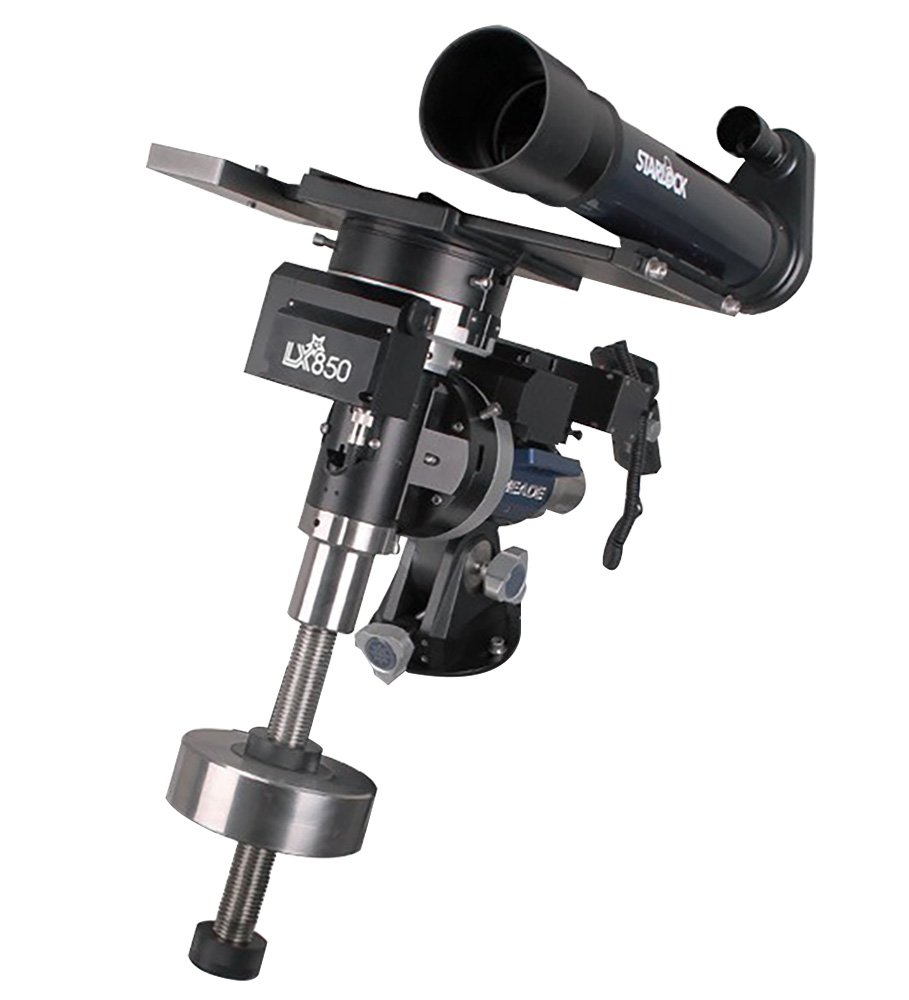 Meade LX850 – неприхотливая, надежная и функциональная монтировка из металла (алюминиевый сплав, нержавеющая сталь). Червячные передачи сделаны из латуни, а рабочие шестерни обеспечивают плавное и равномерное перемещение оптической трубы. Все элементы конструкции не боятся коррозии, поэтому монтировку можно использовать в сложных погодных условиях. Она прекрасно подходит для загородных наблюдений и длительной фотосъемки ночного неба.
