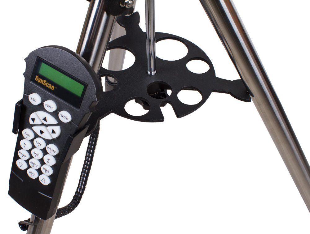 Надежная стальная тренога гарантирует устойчивость конструкции. В комплект входит удобный лоток для аксессуаров. Монтировку также можно установить на фотоштатив с креплением 3/8".
