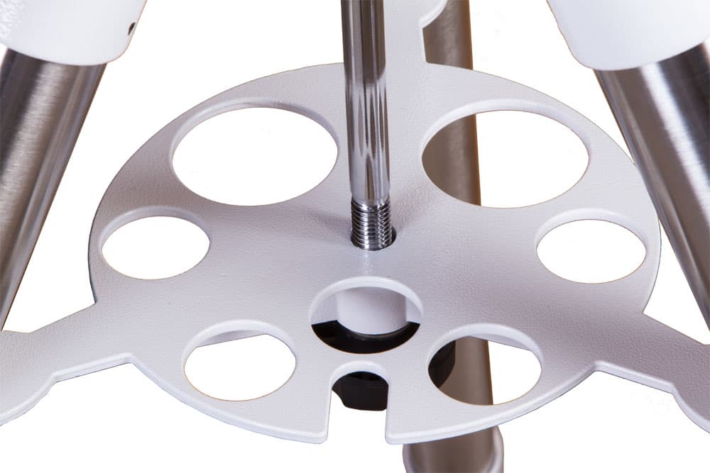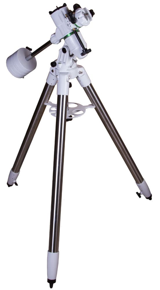 Монтировка Sky-Watcher EQ-AL55 комплектуется стальной треногой NEQ5. Даже в ветреный день она сохраняет идеальную устойчивость. На треногу устанавливается лоток для аксессуаров, который исполняет роль распорки. В лотке предусмотрены отверстия для оптических аксессуаров. Благодаря регулируемым по высоте ножкам треногу можно располагать даже на неровной поверхности.