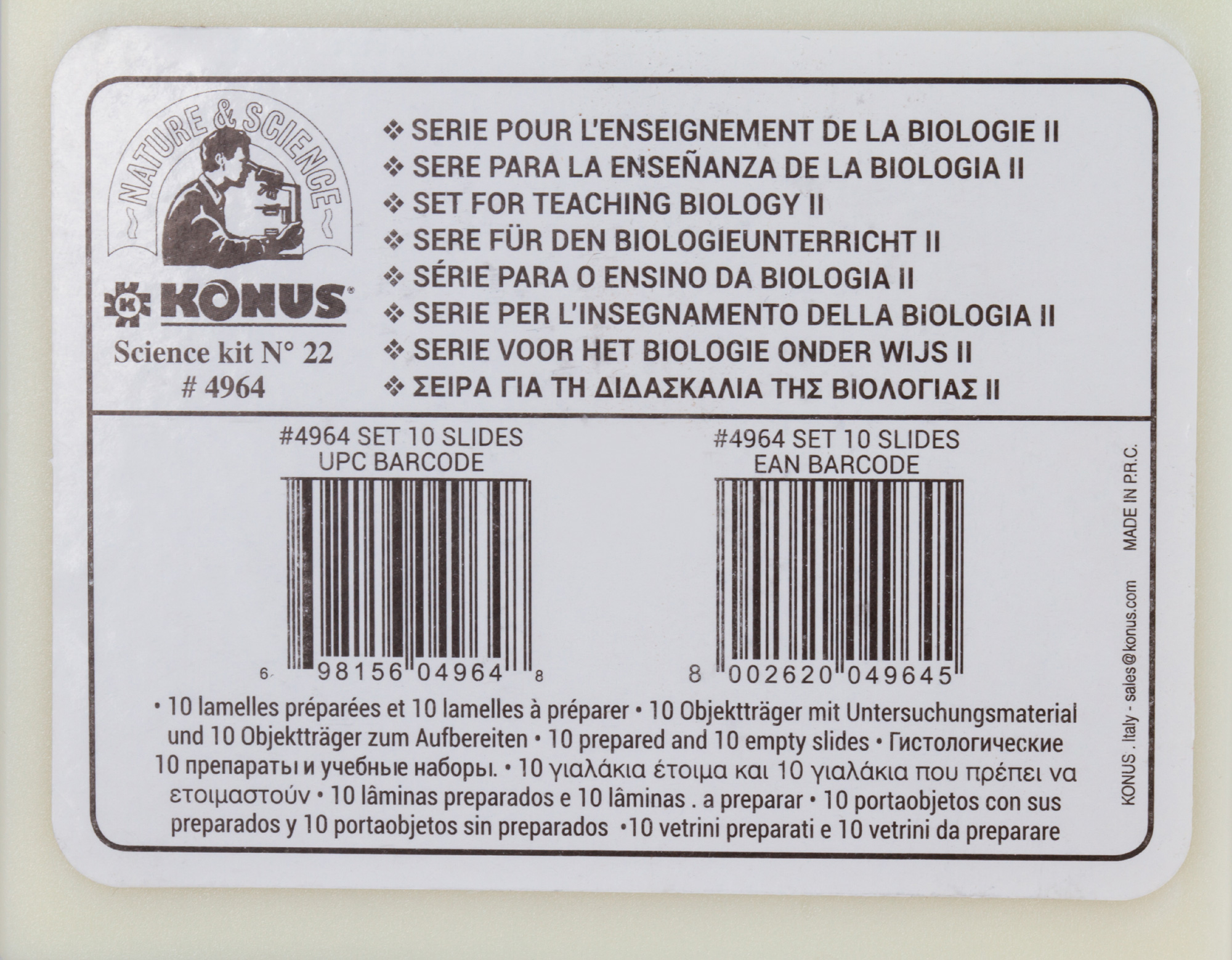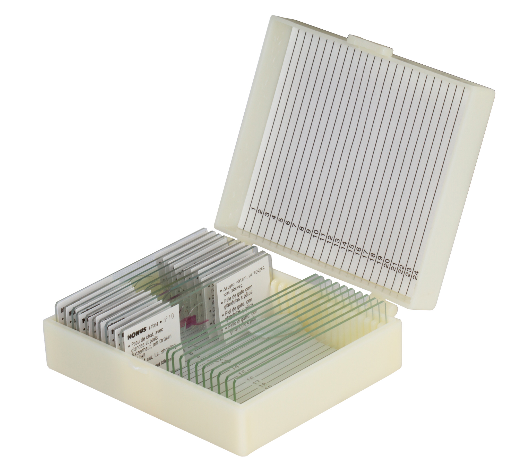 • Каждый микропрепарат снабжен уникальным номером и имеет подпись на 8 языках