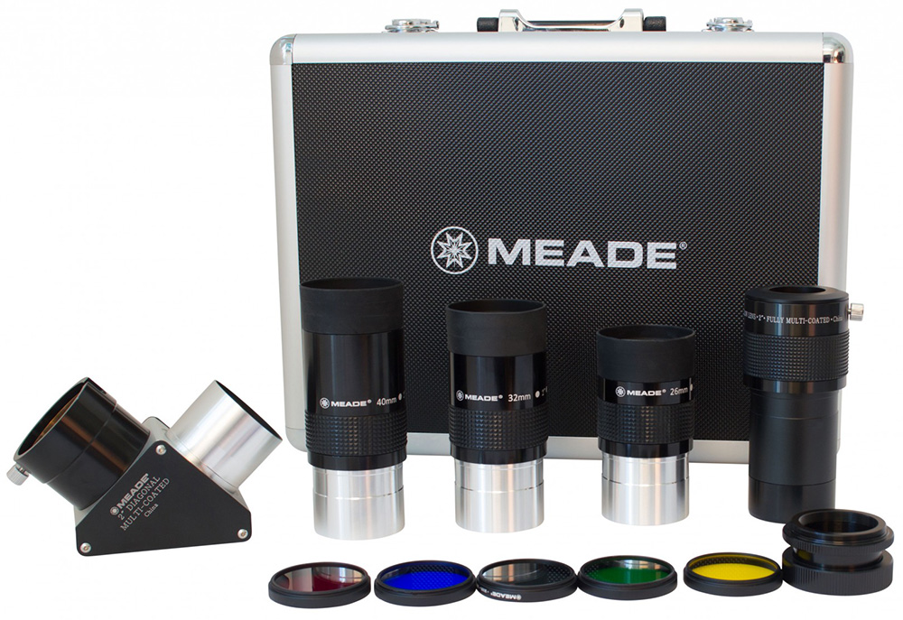 Набор из 11 аксессуаров Meade – это исчерпывающий набор оптических аксессуаров для телескопа. Их можно использовать с большинством современных телескопов вне зависимости от бренда. С этим набором вам больше не нужно будет тратиться на приобретение дополнительных аксессуаров – включенные в набор смогут максимально раскрыть возможности имеющейся у вас оптической техники.