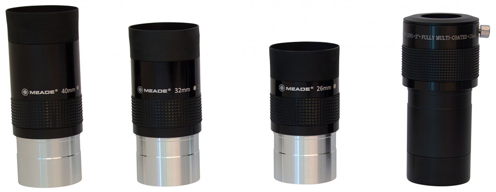 Окуляры Meade Series 4000 – это трехэлементные оптические системы с полным многослойным просветлением. Окуляры 26 и 32 мм имеют поле зрения в 56°, окуляр 40 мм – 50°. Для удобства длительных наблюдений окуляры снабжены резиновыми наглазниками. Окуляры одинаково хорошо подходят для изучения и ближнего, и дальнего космоса. Посадочный диаметр – 2 дюйма.