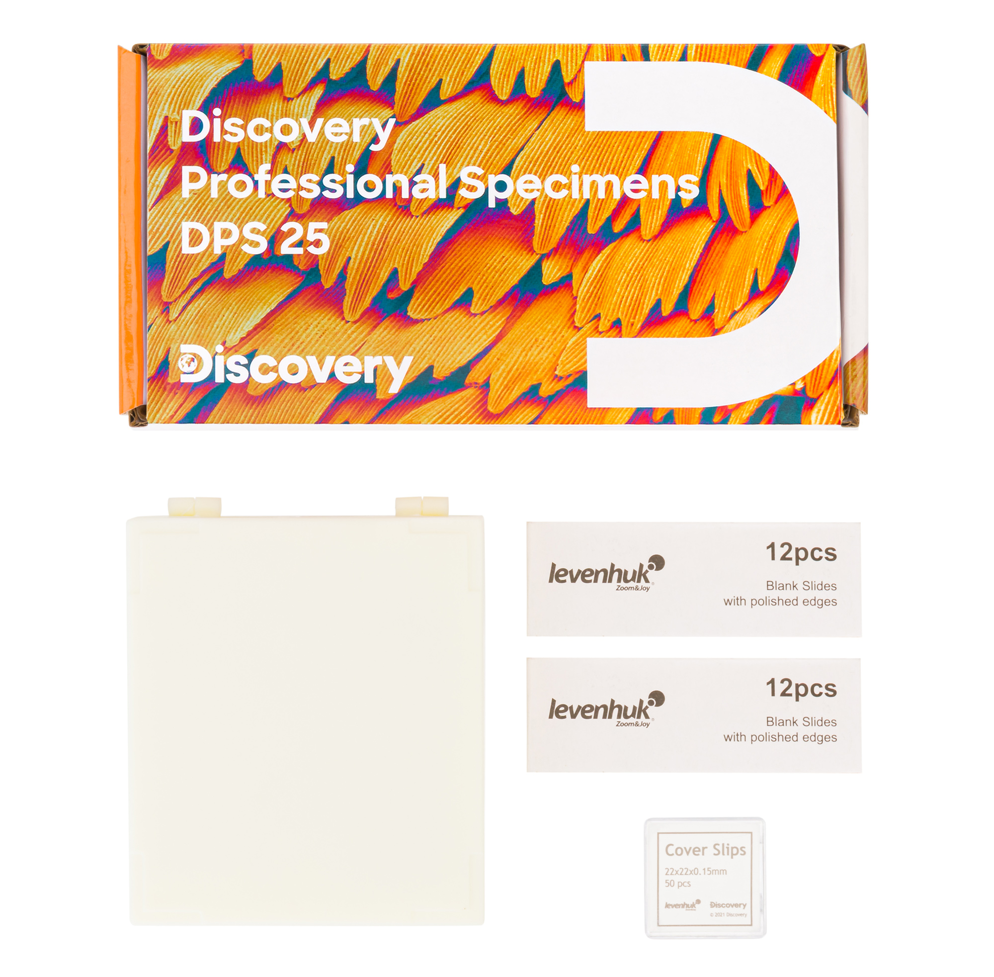 Discovery Prof DPS 25. «Биология, Птицы и др.» – это большой набор из 25 образцов для микроскопических исследований. В него входят препараты из пяти специализированных наборов Discovery Prof DPS 5, таких как «Биология», «Мутации», «Жизнь в капле воды», «Амфибия» и «Птицы». Препараты позволят провести множество познавательных занятий по разным биологическим дисциплинам и составить исчерпывающее представление о строении живых организмов. Набор объединяет множество образцов разных тканей растений и животных, причем как с нормальной физиологией, так и поврежденных вследствие внешних воздействий.
