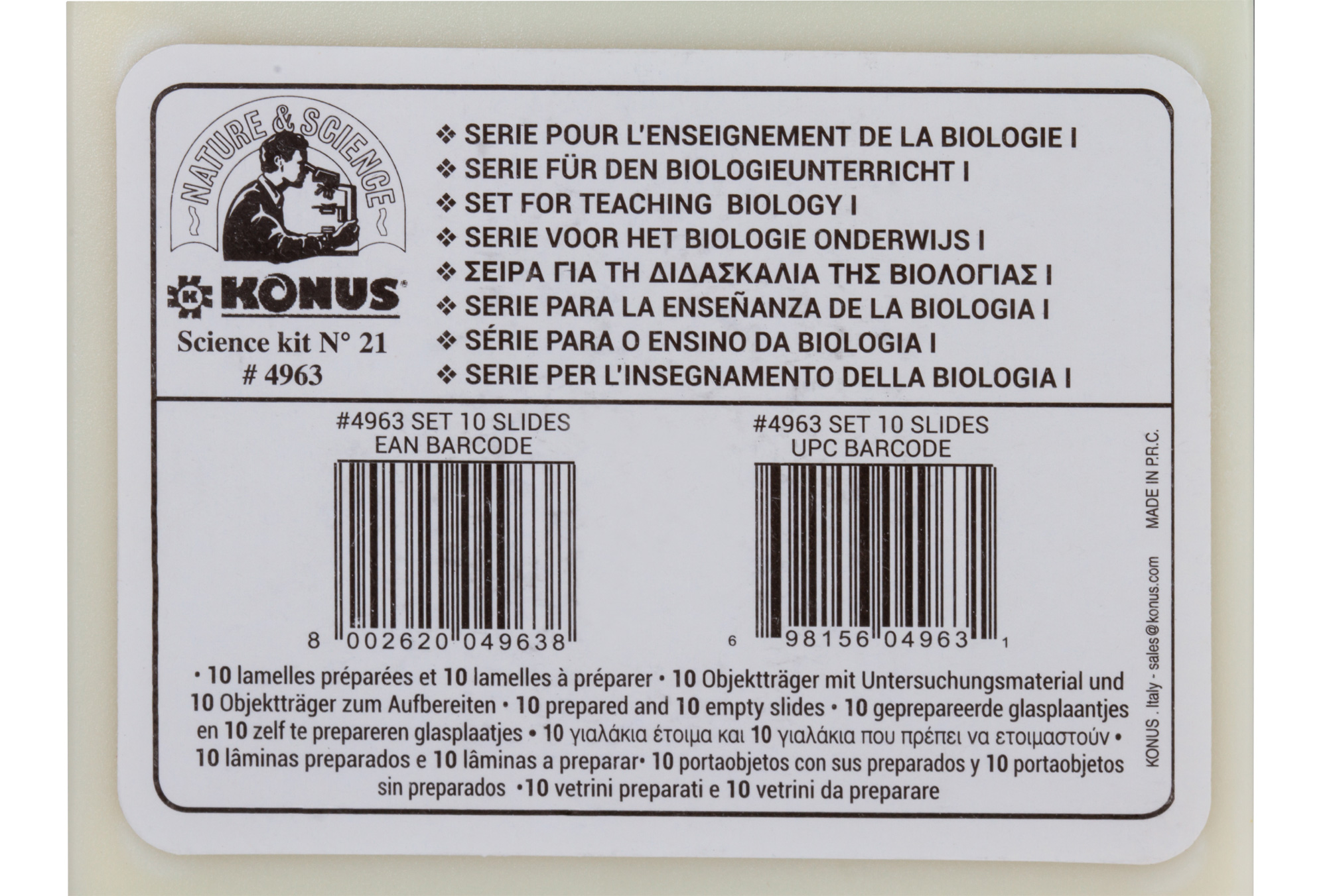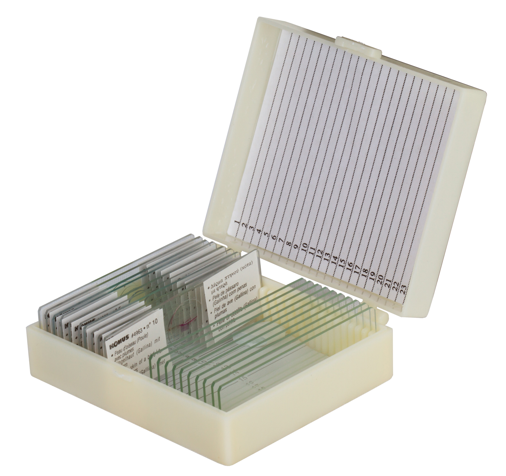 • Каждый микропрепарат снабжен уникальным номером и имеет подпись на 8 языках
