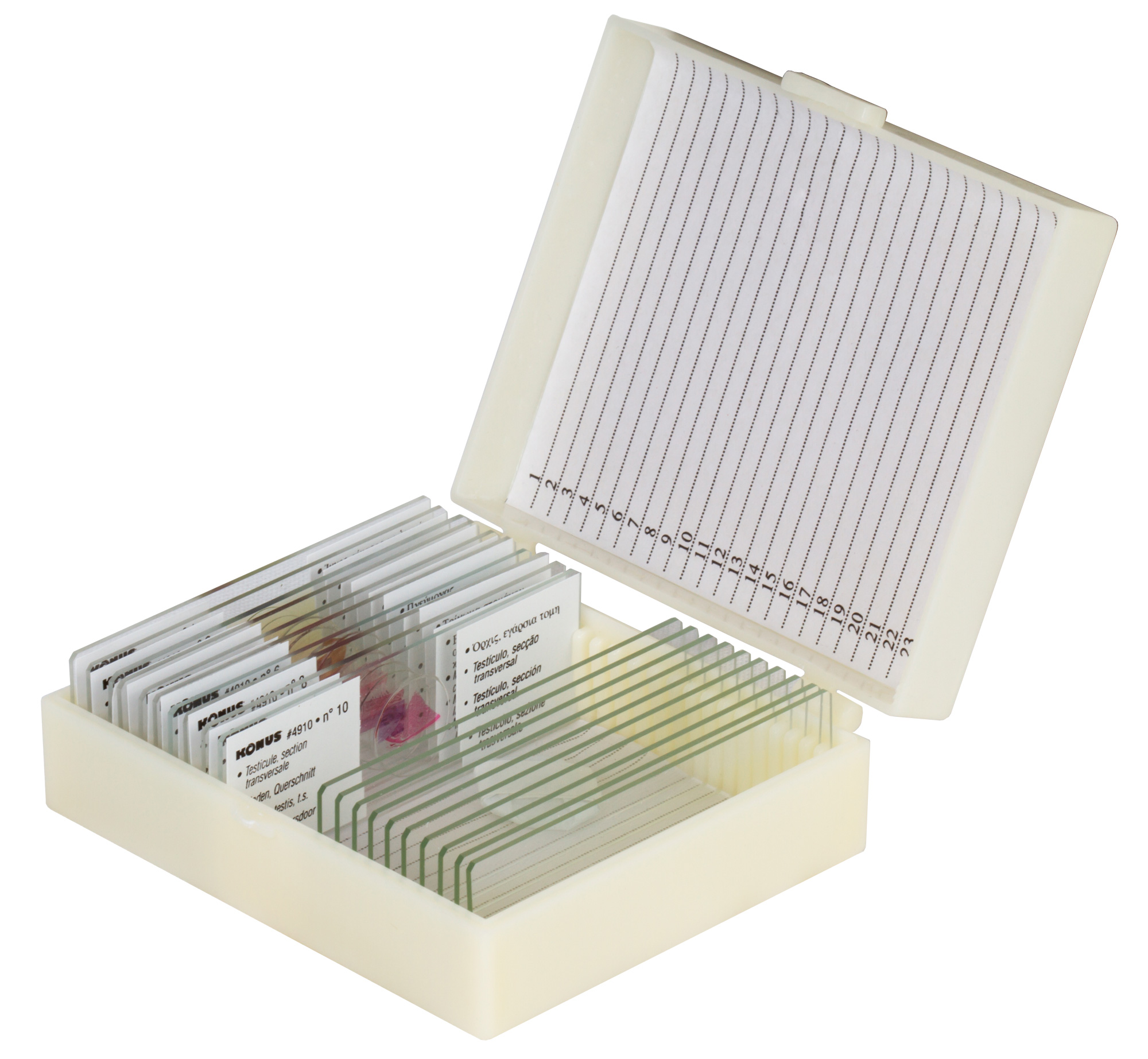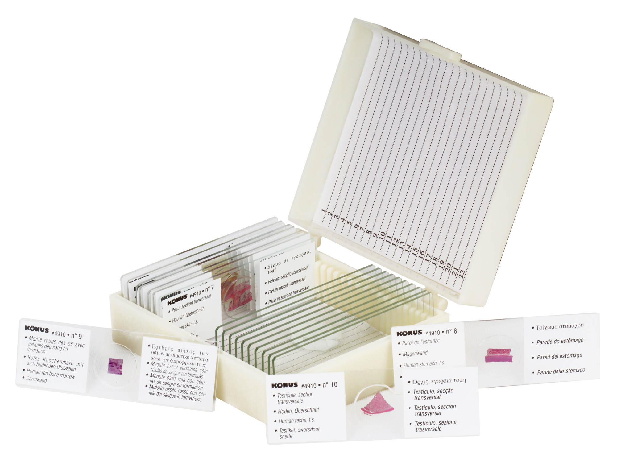 • Каждый микропрепарат снабжен уникальным номером и имеет подпись на 8 языках