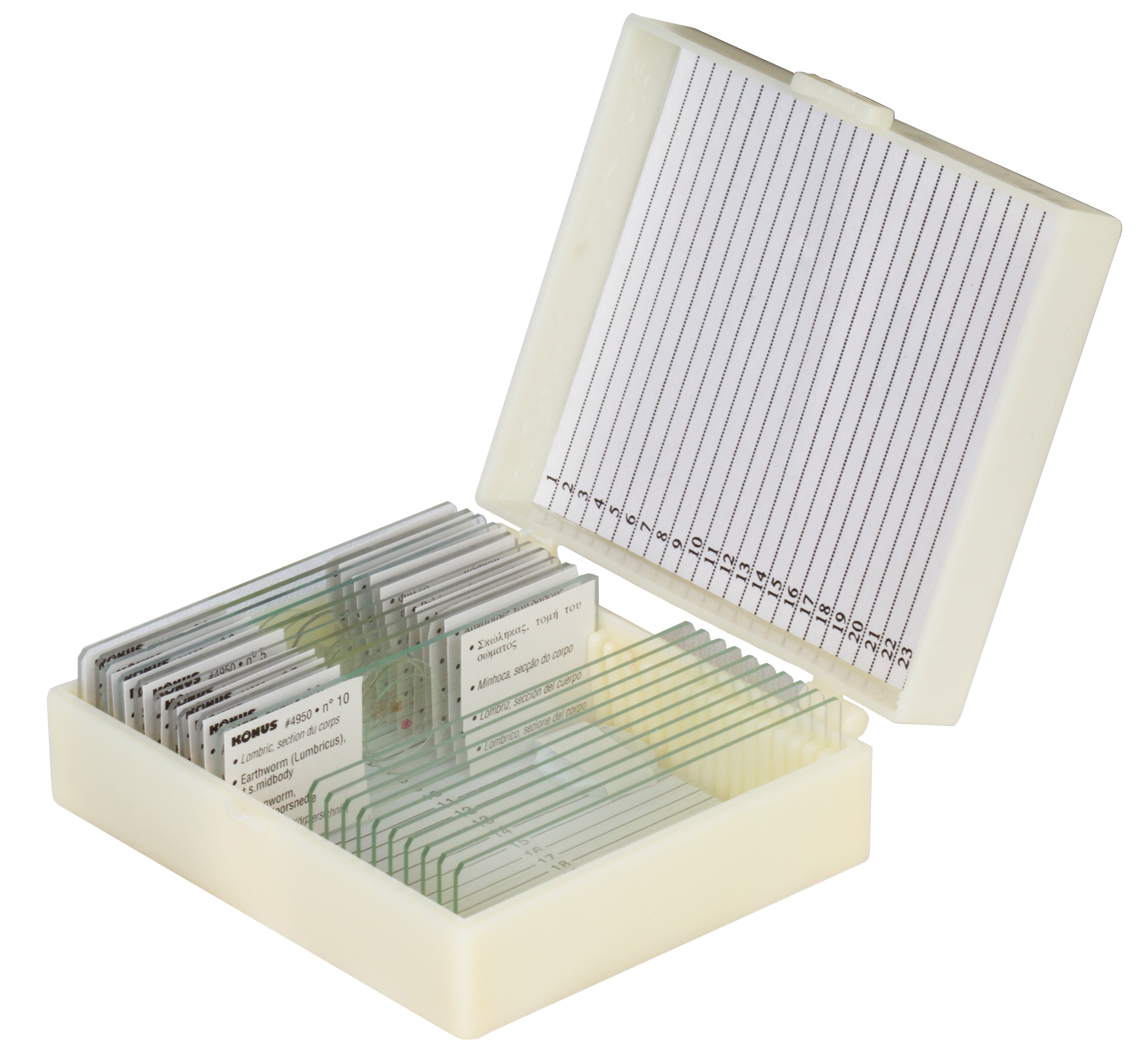 • Каждый микропрепарат снабжен уникальным номером и имеет подпись на 8 языках