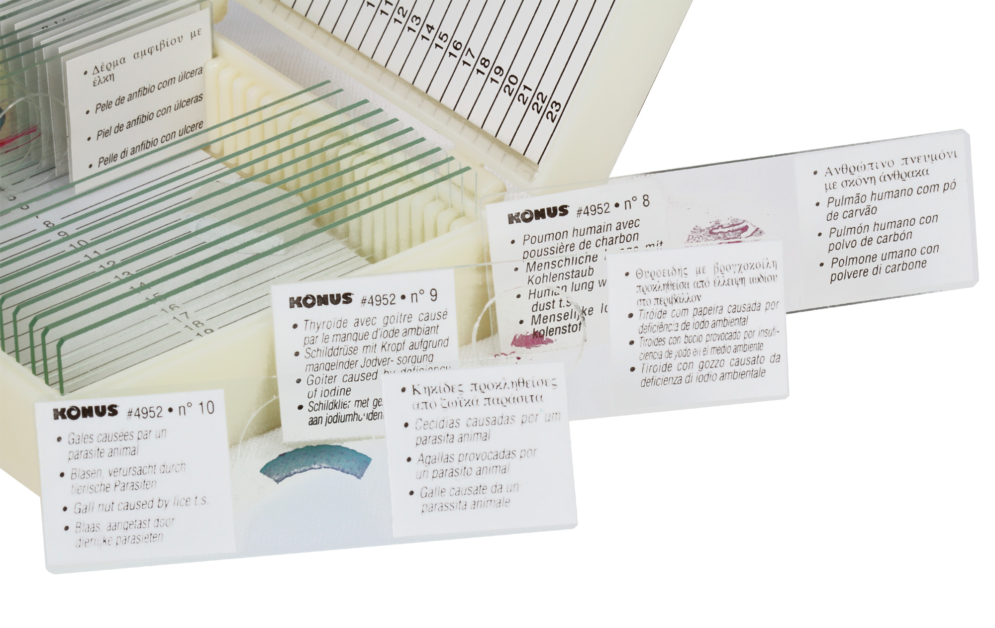 • Каждый микропрепарат снабжен уникальным номером и имеет подпись на 8 языках