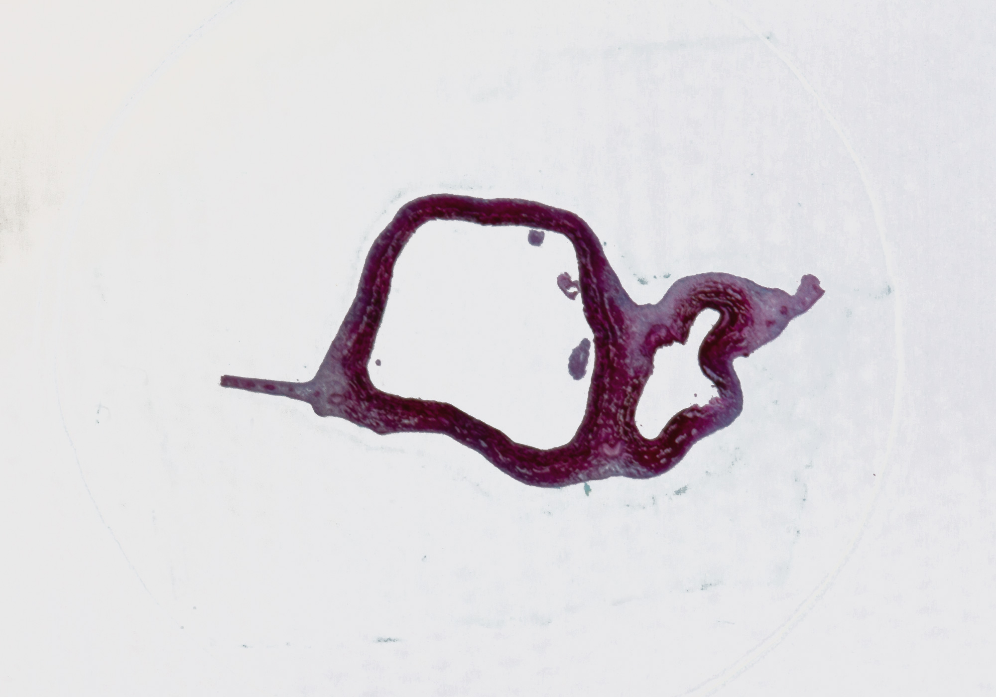 6. Рыбная чешуя, поврежденная химическими веществами, поперечный срез.