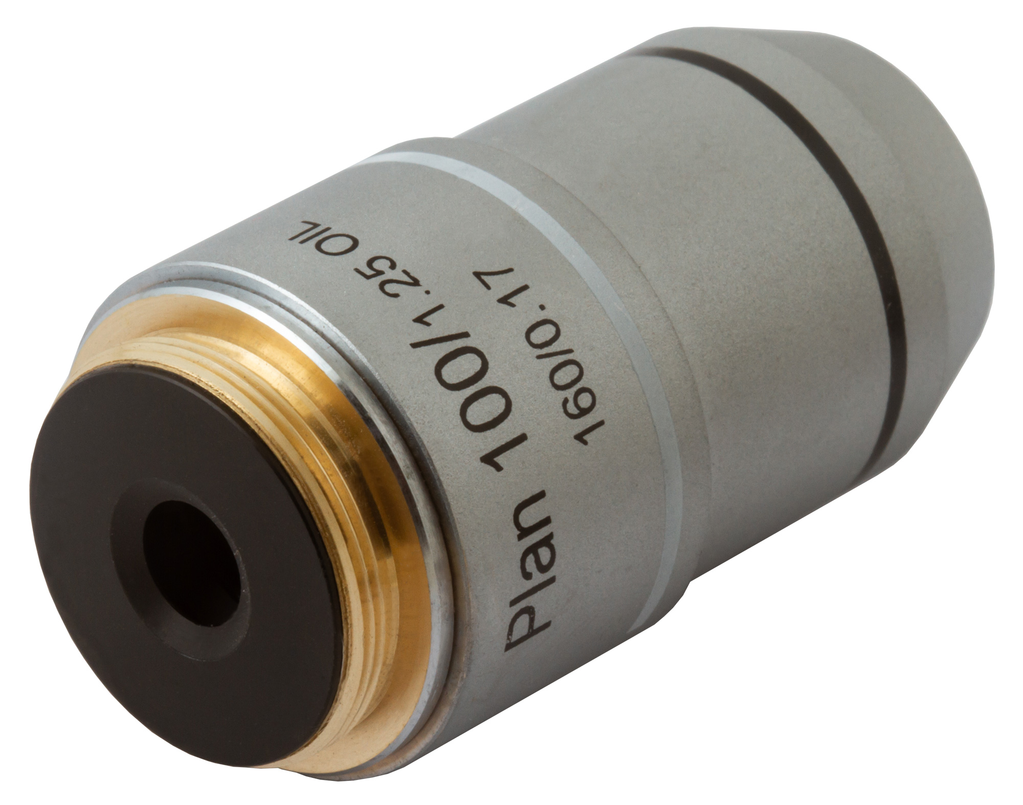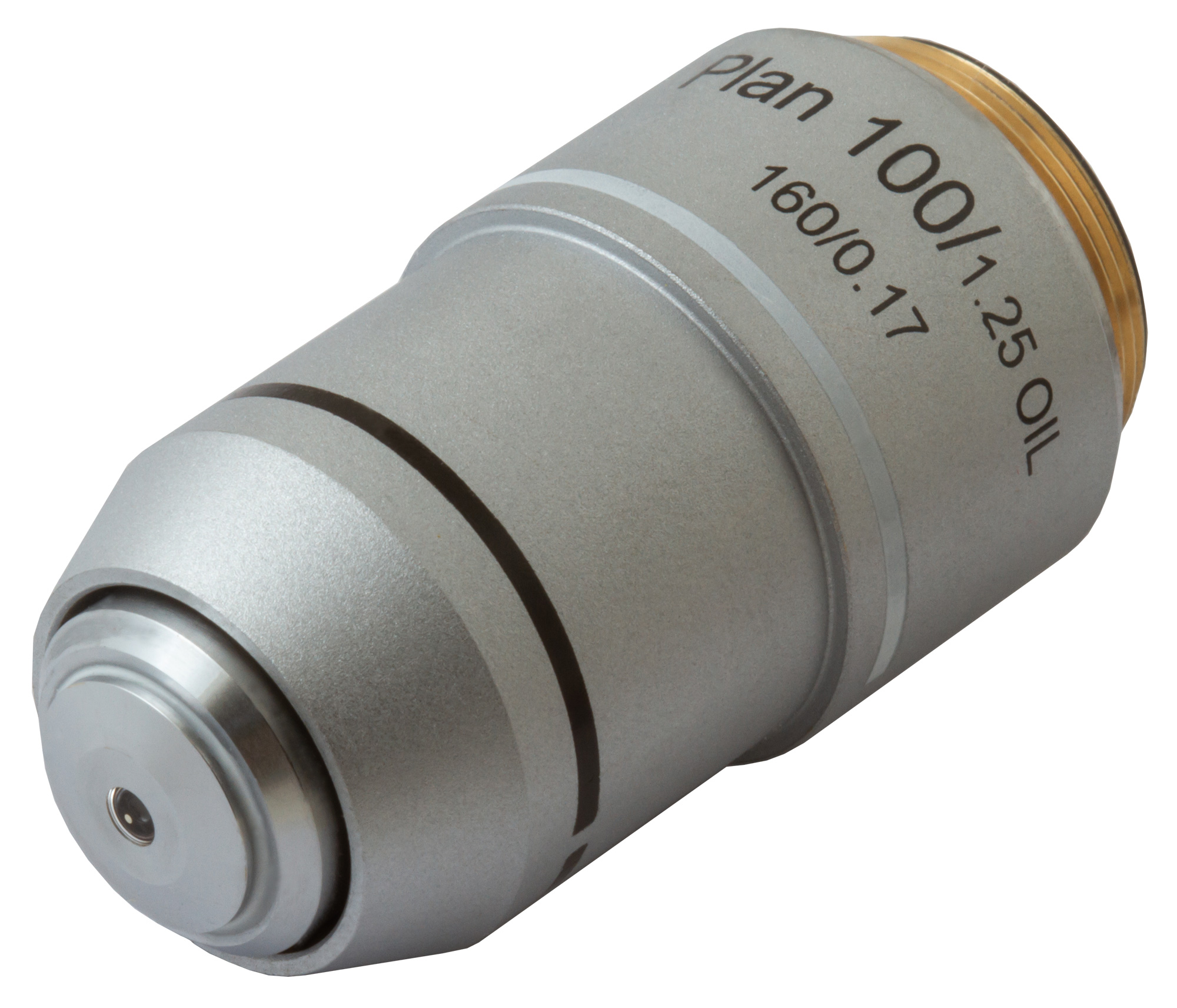 Планахроматический объектив Levenhuk MED 100x можно использовать для «сухих» наблюдений и исследований с применением масляной иммерсии. Рабочее расстояние объектива небольшое, поэтому передняя линза защищена пружинящей оправой, что исключает ее случайное повреждение. Планахроматическая оптика улучшает детализацию передаваемой картинки, так как убирает сферические аберрации. Поле зрения выровнено практически полностью, улучшена цветопередача.