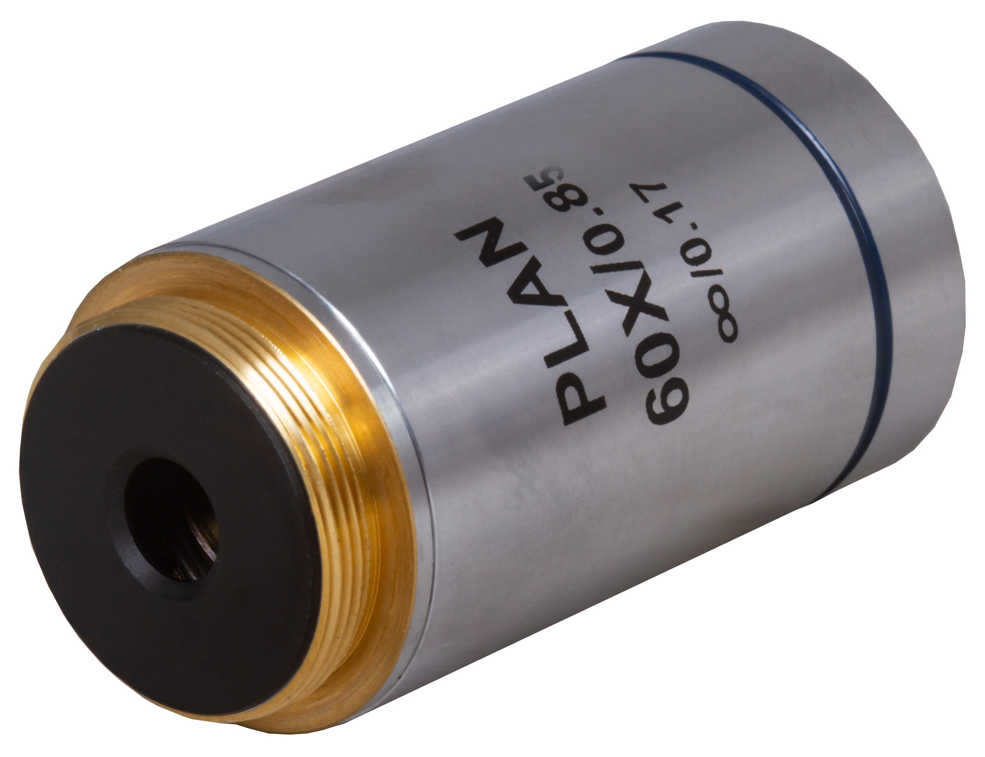 Планахроматический объектив Levenhuk MED 60x/беск совместим с большинством современных микроскопов, длина тубуса которых скорректирована на бесконечность.