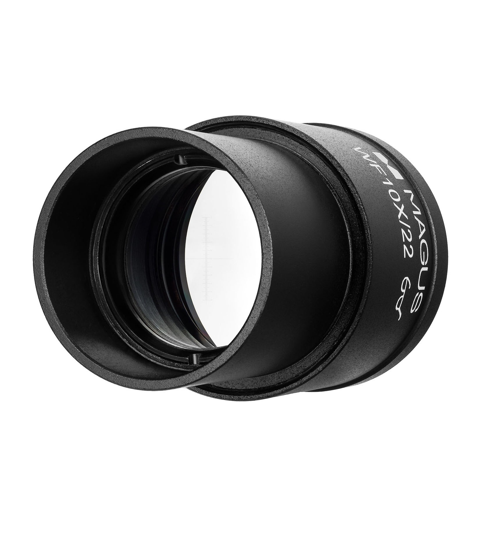 Окуляр со шкалой в плоскости полевой диафрагмы для измерения исследуемых объектов в миллиметрах или микронах. Цена деления шкалы 0,1 мм. Окуляр устанавливают в тубус диаметром 30 мм вместо стандартного окуляра с увеличением 10x. Для каждого используемого объектива выполняют калибровку шкалы. Для этого требуется калибровочный слайд (объект-микрометр) с ценой деления 0,01 мм. Слайд размещают на предметном столике микроскопа и вращают окуляр в тубусе, пока деления шкал окуляра и слайда не окажутся параллельными.