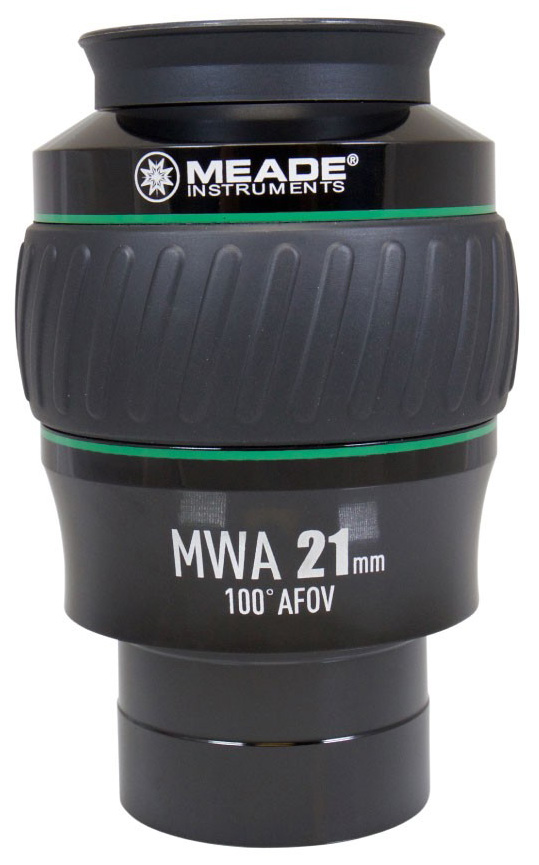Благодаря большому выносу выходного зрачка окуляр Meade MWA 21 мм удобен для тех, кто ведет наблюдения в очках.