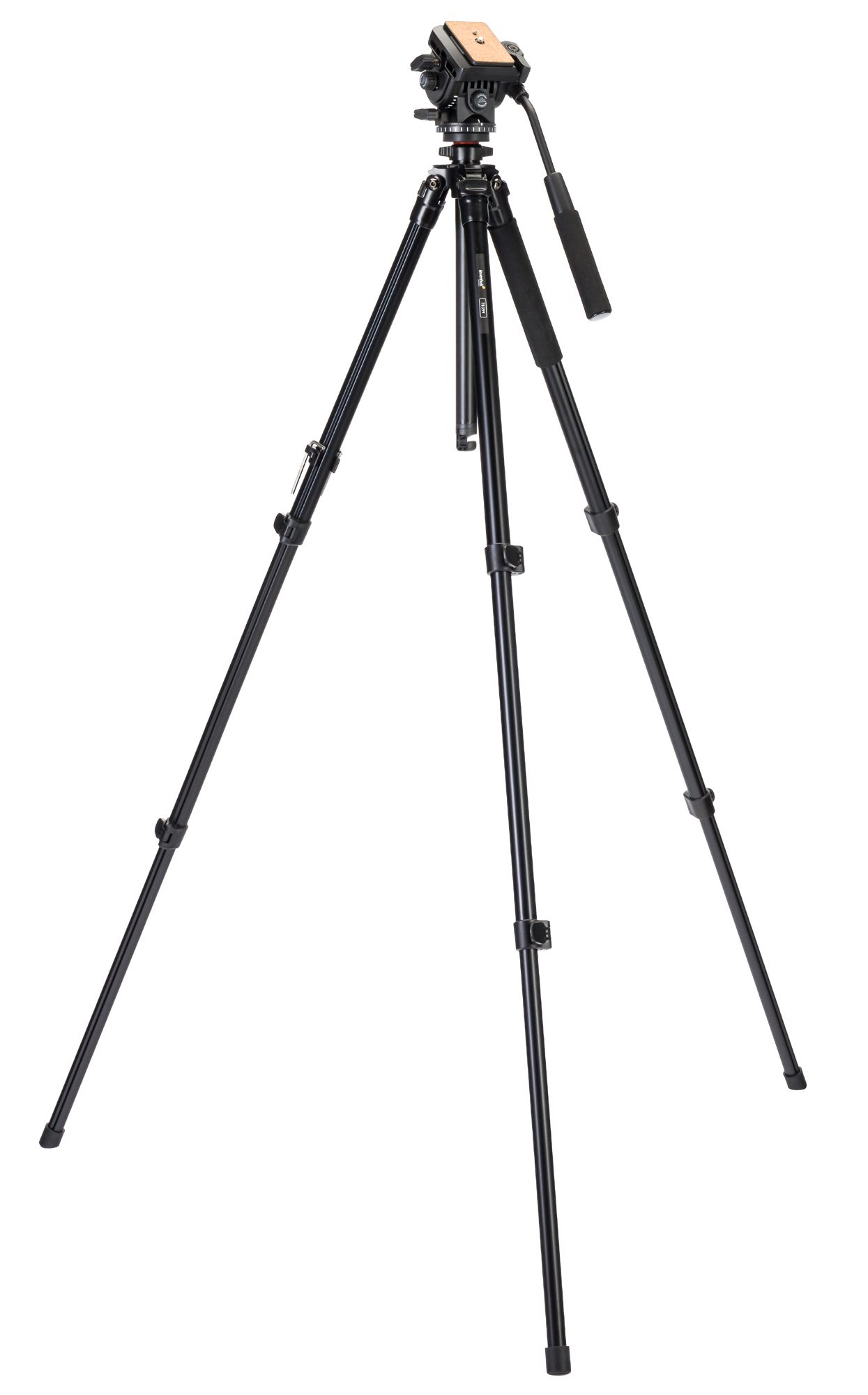 Высоту каждой ножки можно регулировать отдельно: нужно лишь отщелкнуть флип-замки, выдвинуть ее на нужное расстояние, а после снова защелкнуть замки. Центральная штанга тоже может быть поднята. Штатив имеет встроенный пузырьковый уровень, который упрощает выравнивание по линии горизонта. В комплектацию включен чехол для транспортировки и хранения.