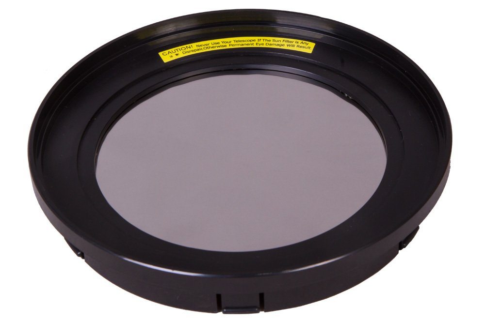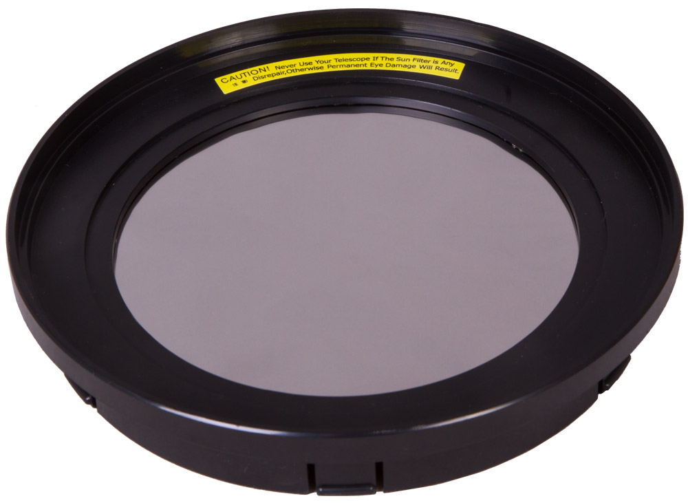 Солнечный фильтр Sky-Watcher разработан специально для зеркальных телескопов с апертурой 130 мм. Его можно устанавливать на телескопы любых марок. Перед началом наблюдений обязательно нужно удостовериться, что фильтр плотно установлен на оптическую трубу, а на поверхности пленки нет повреждений.