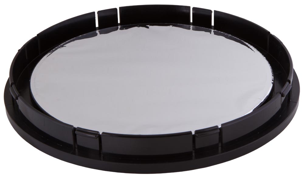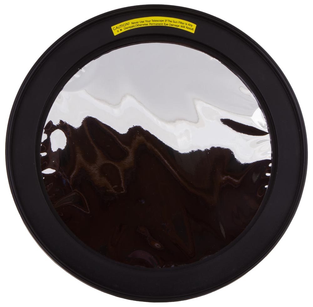 Солнечный фильтр Sky-Watcher для рефлекторов 200 мм позволит смотреть в телескоп на Солнце. Фильтр сделан из светозащитной астрономической пленки и устанавливается внутрь трубы. Он отражает все вредное для зрения излучение, пропуская лишь 0,001% безопасного спектра. Фильтр создает хорошую контрастность, а Солнце через него выглядит нейтрально-белым.