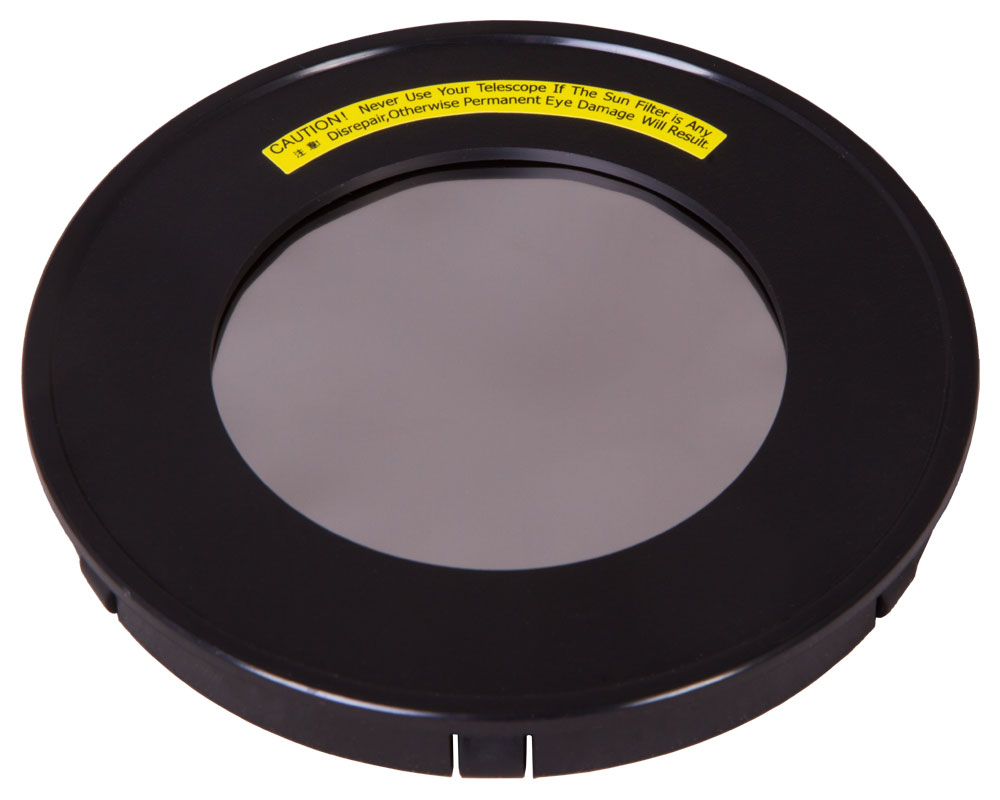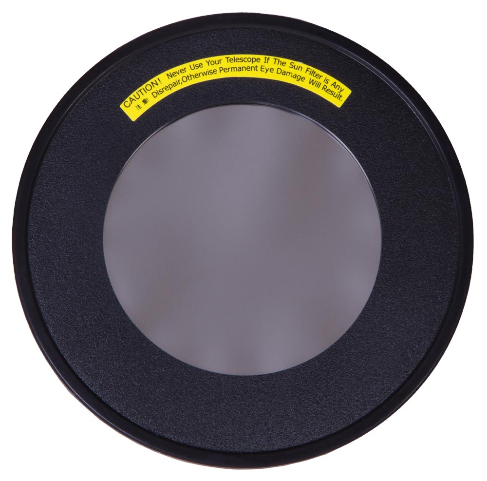 С помощью этого фильтра можно навести телескоп на Солнце и изучать множество интересных процессов и явлений – факельные поля, грануляцию, солнечные пятна и многое другое. Фильтр сделан из специальной солнцезащитной астрономической пленки и подходит для линзовых телескопов с апертурой 102 мм.