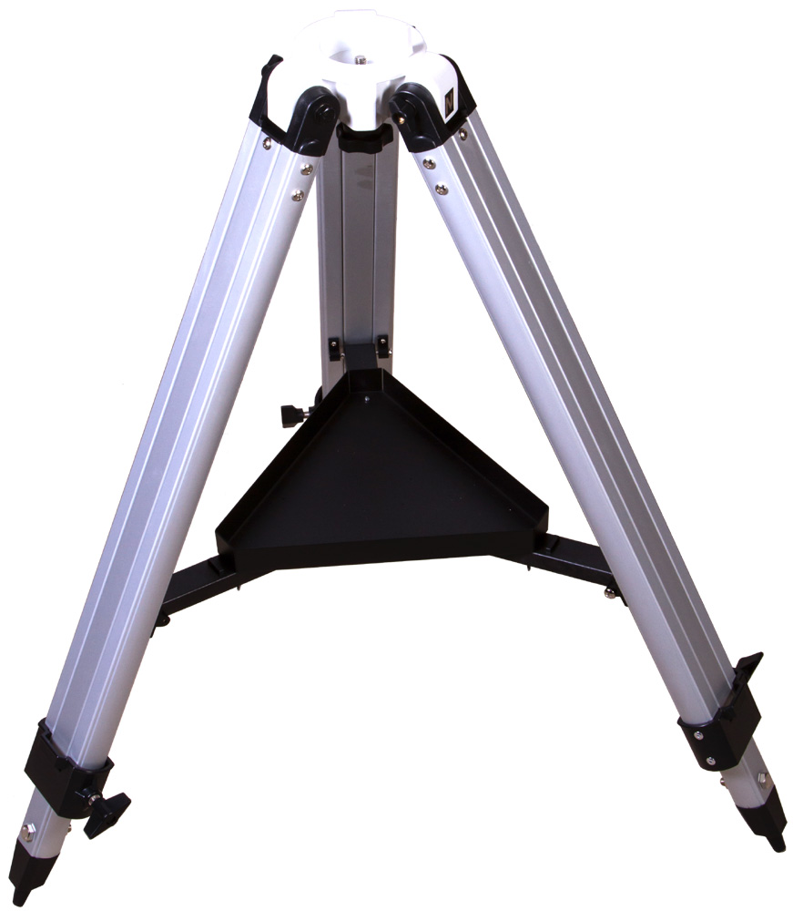 Тренога Sky-Watcher для монтировки EQ3-2 сделана из алюминия и может нести оборудование весом до 5,5 кг. Тренога легкая, но устойчивая и надежная. Лучше всего она подойдет для использования с рефракторами и зеркально-линзовыми телескопами. Высоту ножек треноги можно регулировать. Зафиксировать треногу на нужной высоте можно при помощи стопорным винтом. На центральную распорку устанавливается лоток для аксессуаров (в комплекте).