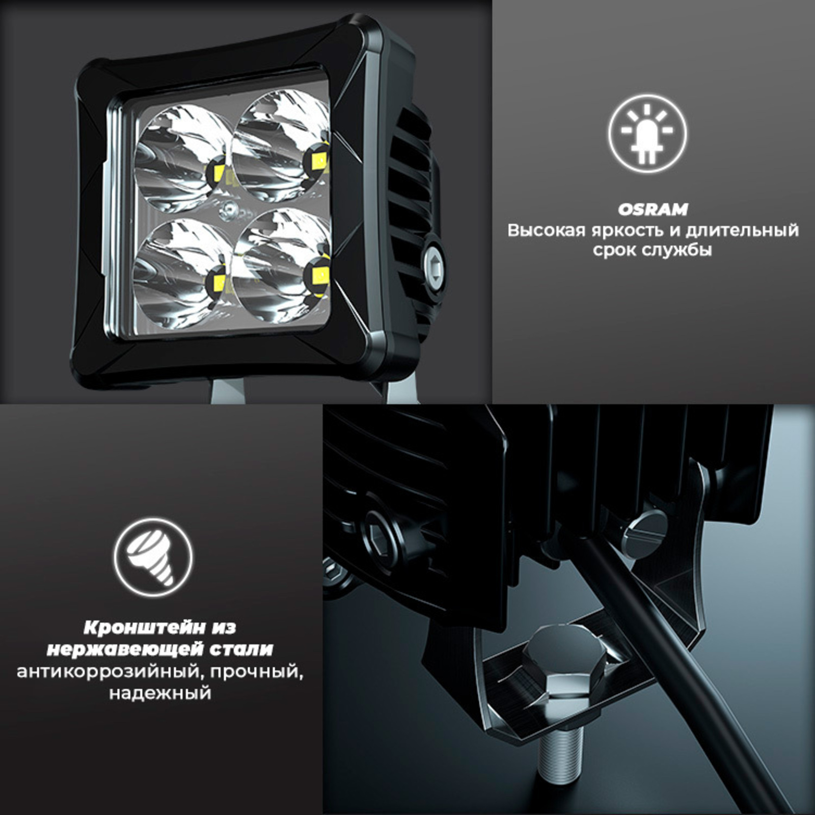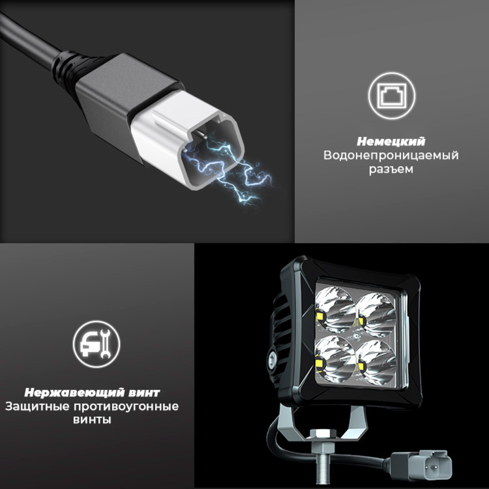 - Устойчивость к внешним воздействиям: Класс защиты IP68 предоставляет уверенность в том, что фара будет функционировать без перебоев даже в дождливую погоду и в условиях сильной пыли.
