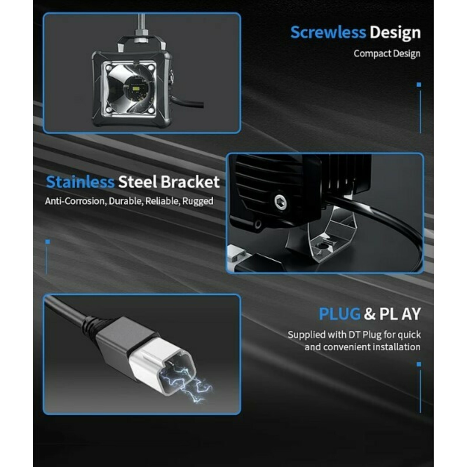 Фара -2шт, провода подключения-1шт, кронштейн-2шт