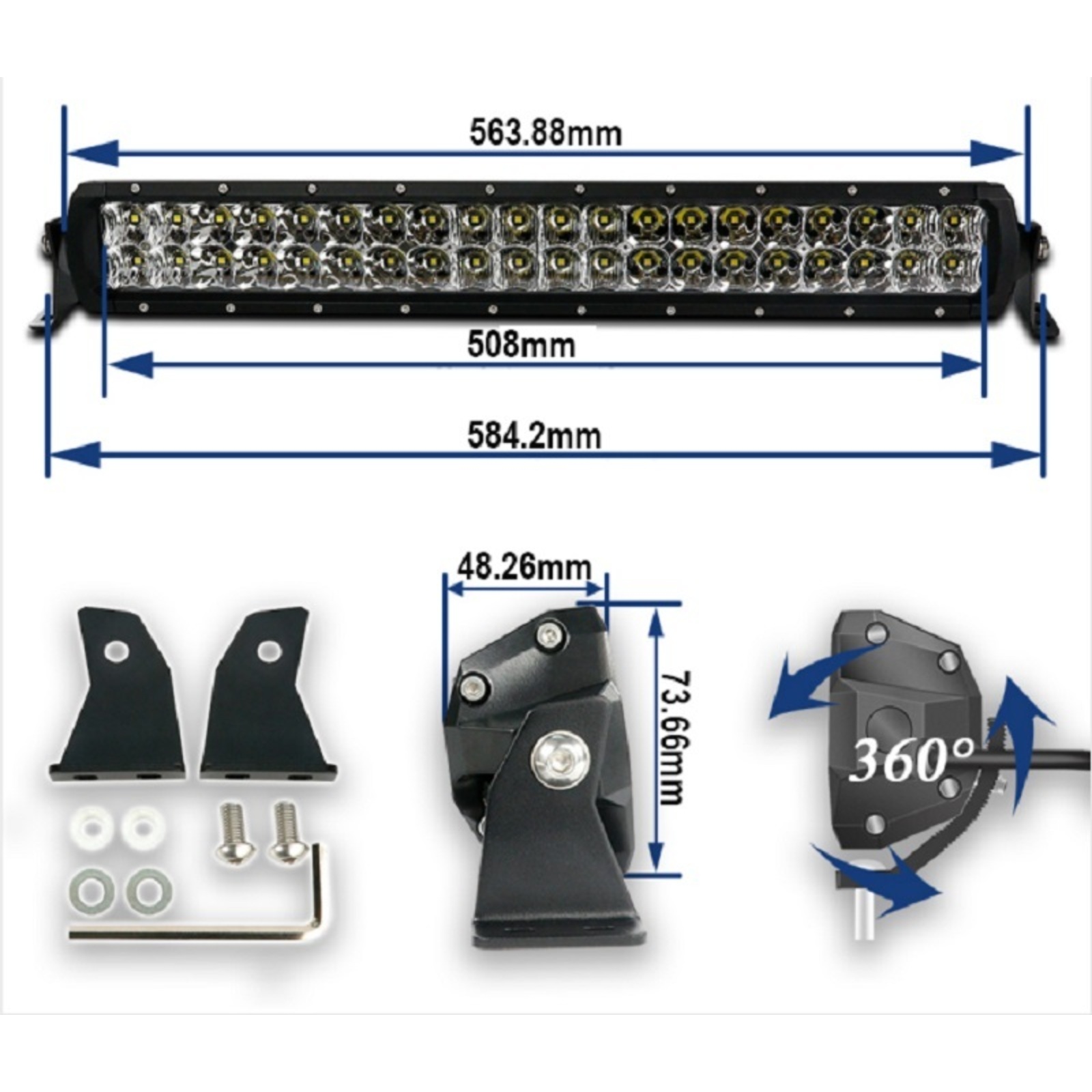 - Изогнутая форма: Изогнутая конструкция фары идеально подходит для установки на криволинейные поверхности, такие как крыши внедорожников, обеспечивая максимально широкий угол освещения.