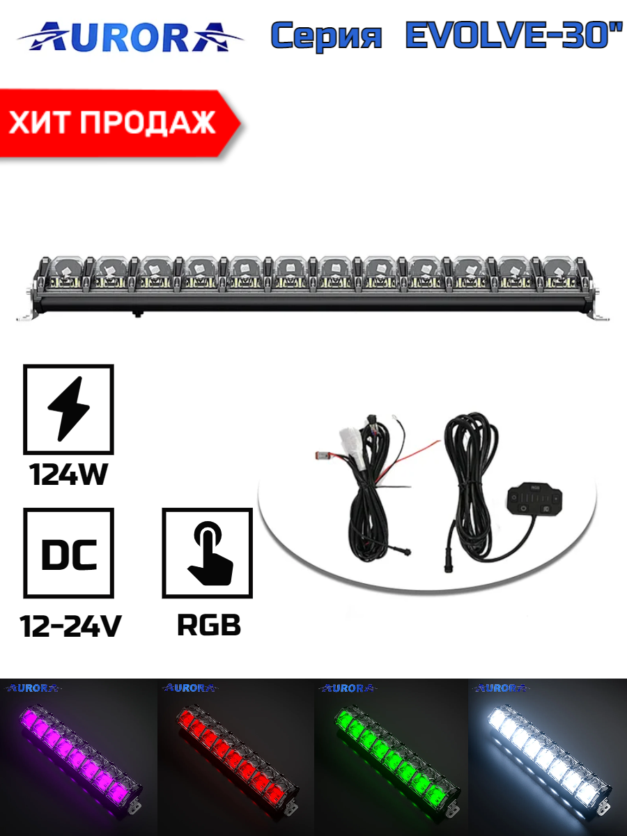 Балка 12-24В, 372Вт, 12300Лм, 6500K, 30", RGB-DRL, Scene beam, Hi/Lo, Spot, Flood