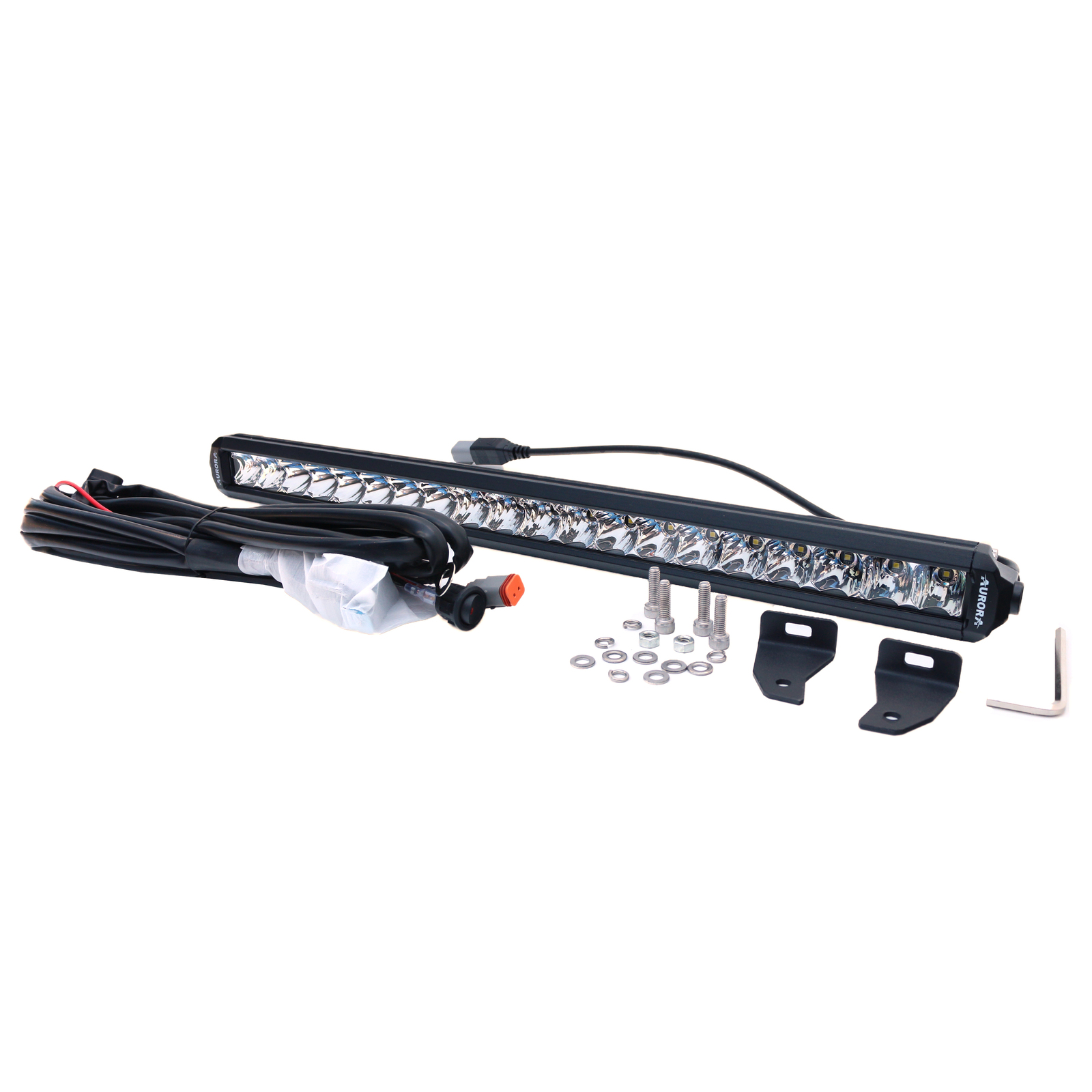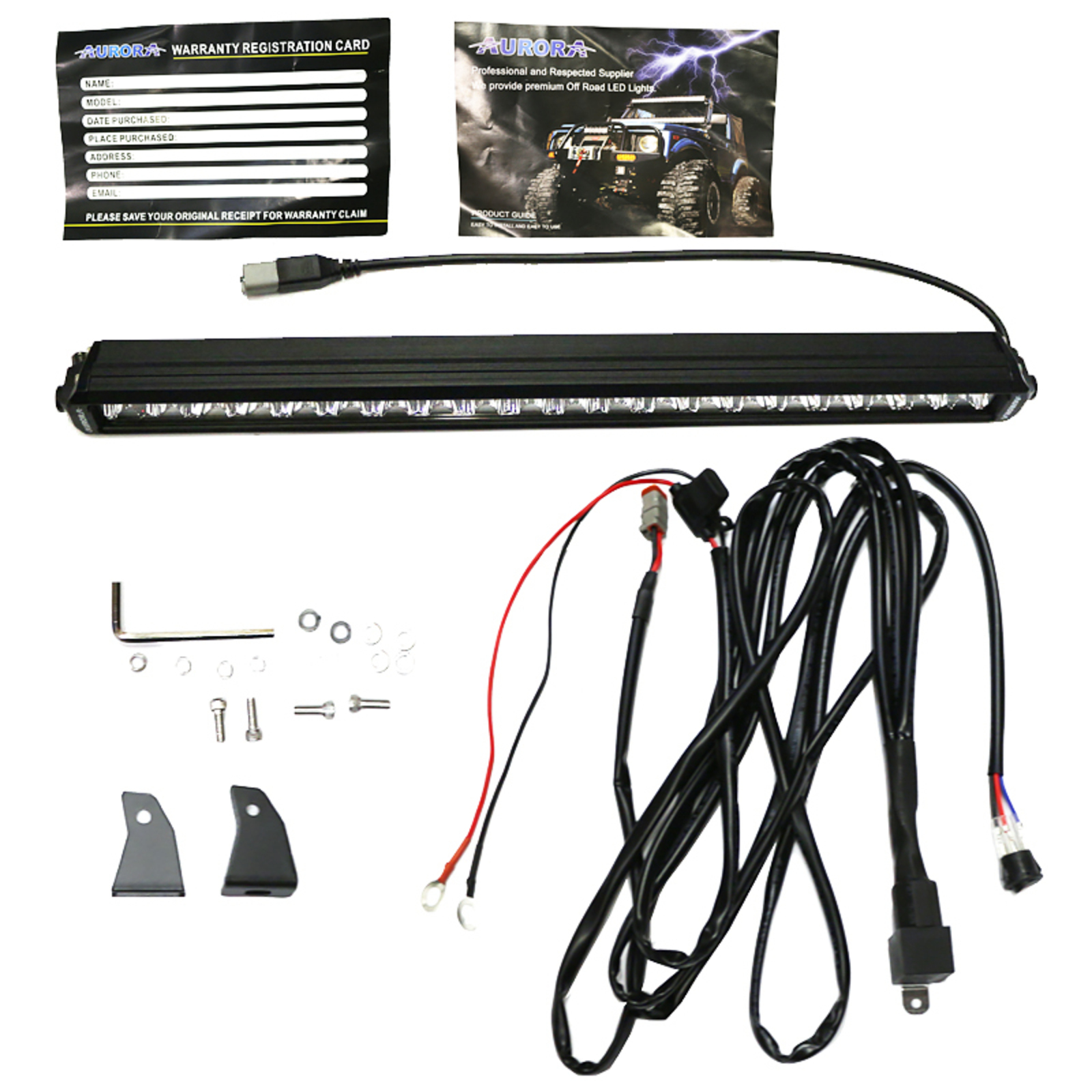 В изделии установлены оригинальные светодиоды CREE или OSRAM. Для предотвращения образования конденсата внутри корпуса при перепаде температур во время работы и после отключения светодиодная балка оснащена высокотехнологичным регулятором давления (сапун). Эта особенность кардинально отличает все изделия AURORA от другим производителей этой товарной ниши. Данная LED фара AURORA так же снабжена крепежом из прочных материалов. Сама светодиодная балка, штекер и электрические провода выполнены с учетом защиты соединений от попадания пыли и влаги по стандарту IP68.