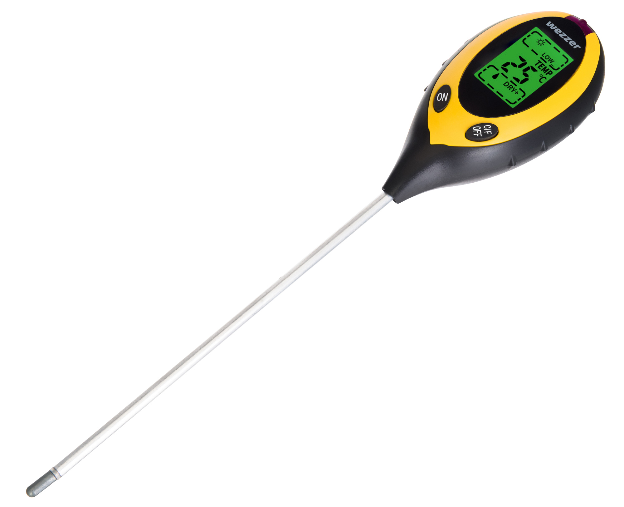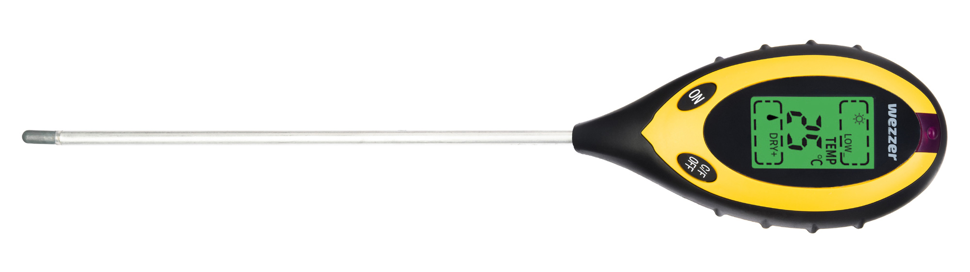 Levenhuk Wezzer PH20 оснащен удобным ЖК-экраном с подсветкой, на который выводятся результаты измерений. Замеры в грунте выполняются с помощью длинного щупа. Оценка уровня общего комфорта наглядно демонстрирует, насколько микроклимат благоприятен для растений. Работает прибор от одной батарейки, для удобства предусмотрен индикатор заряда. Корпус выполнен из высокопрочного ABS-пластика, стойкого к механическим повреждениям, поэтому анализатор прослужит долго.