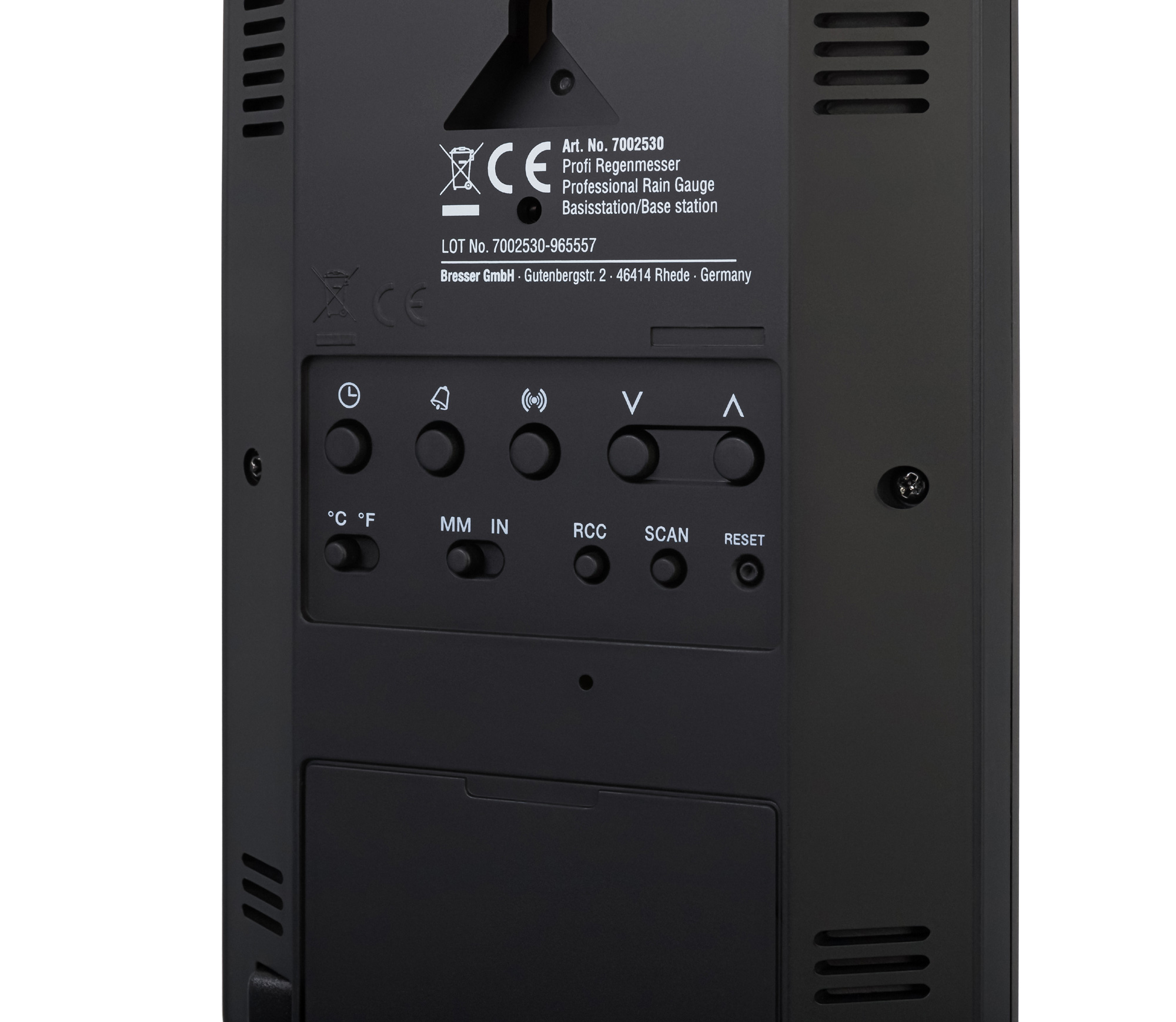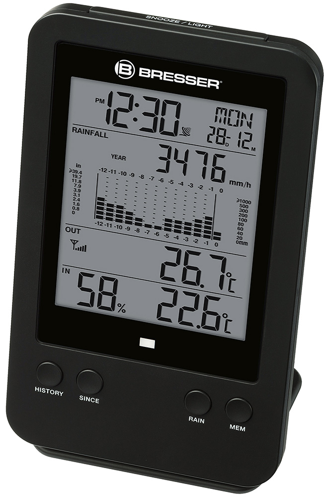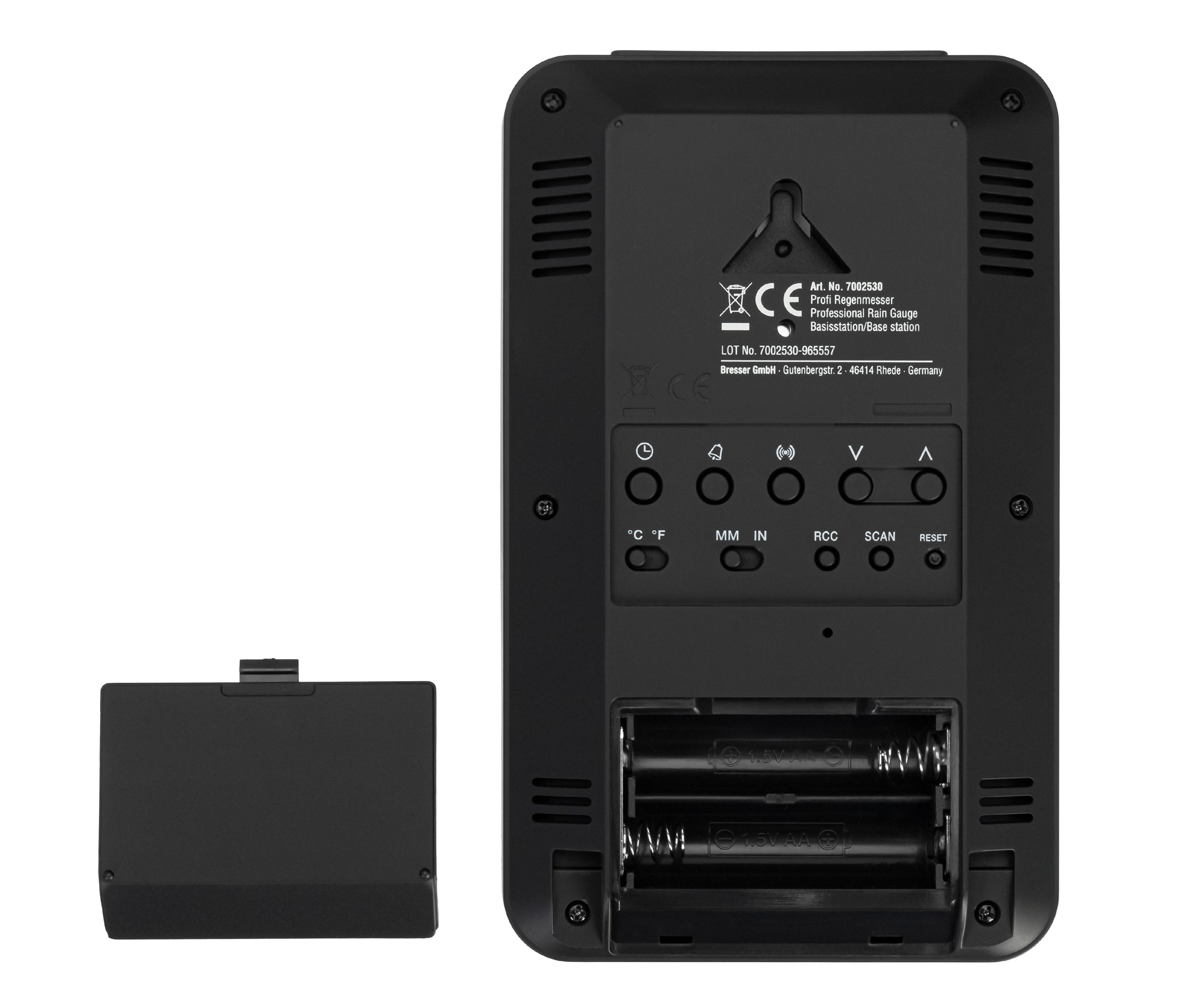 Перед вами база для датчика дождя Bresser – профессиональной метеостанции, которая среди прочего также умеет определять уровень осадков. База – это основной модуль этой метеостанции, который отвечает за измерения внутри помещения и отображение информации, получаемой от датчиков. Его можно приобрести для замены уже имеющегося модуля (например, в случае его поломки) или в качестве дополнительного.